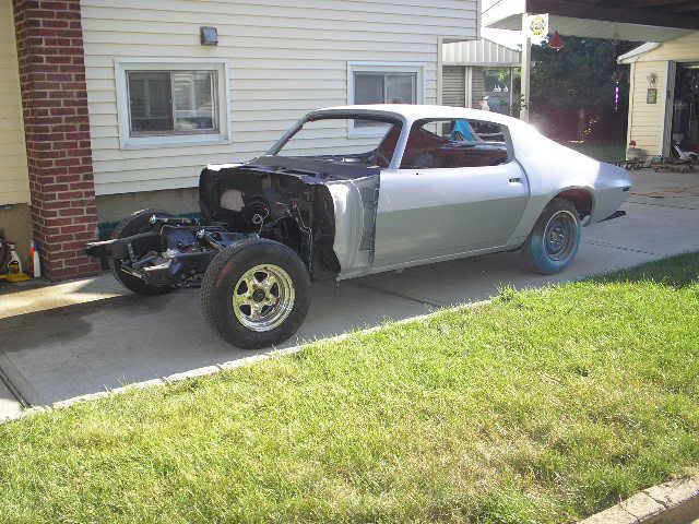 my name is Joe. I'm building a 1972 Camaro with a drivetrain out of a 2004 GTO with a procharger setup. I'm a senior in high school and I work 40 hours a week at a local gas station to afford paying for this car. I'm kind of midway with the car so I'll try and put up as many old pics as I have so everyone knows what's going on. I've had the car since I was in the 8th grade and I paid for everything myself. The car is being built in pro-touring style and I plan on taking it on the track as much as I can. I found the car from my father's friend who has had it since it was new (have pictures of the car new) which he took apart from the start and was going to make it into a race car. He took it all apart, painted it and that's where she sat since 1978 to 2006. The car has 22,000 original miles and is an original SuperSport. The body didn't have one spec of rust and the car is all original panels