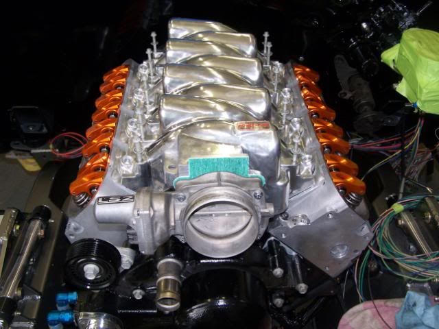Ok, here is the latest...We have been hard at work getting wiring all figured out. Decided not to use painless and go with factory wiring and computer. Have it all ran and ready for power. Ignition all all that is done, shortened and removed all unwanted wires and repinned the computer connectors accordingly. We have to have the computers flashed and soon we will be ready to start it up. My brother decided to change the cam, rockers, intake and have the heads ported. (of course after I painted everything) We had a guy that does it for Lingenfelter do it and it should have awesome flow, he cleaned up the intake as well inside. The flow numbers are 317 at 600 lift? max. whatever that means, I am not an engine guy, but my brother said that is awesome.