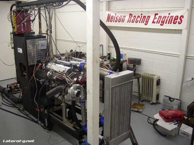 It's an all-alluminum, fuel injected, intercooled twin turbo 434 SBC. 23* heads, idles at 700 rpm.