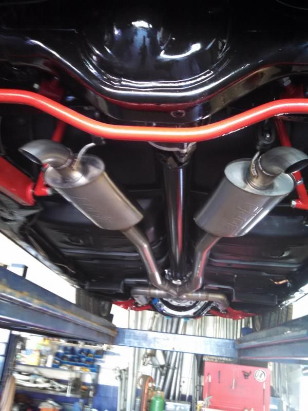 -Custom stainless steel X-pipe and exhaust w/ Borla XR1 mufflers