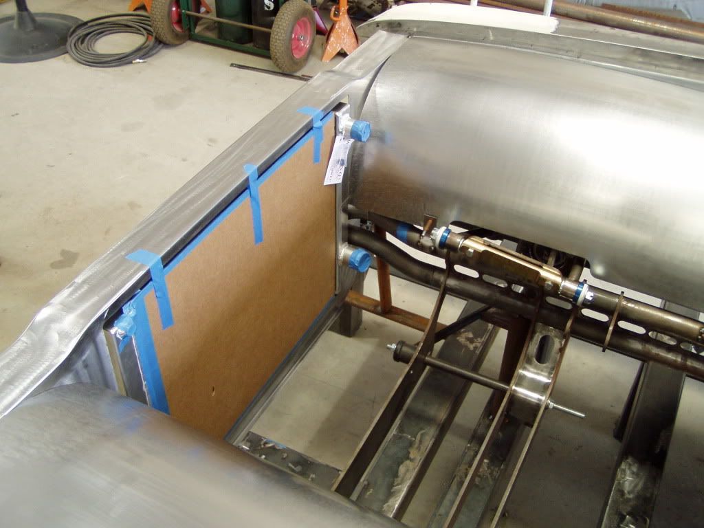 Since the new radiator is wider (side-to-side) than a stock radiator, the "hump" on top of the support was fabricated wider as well.