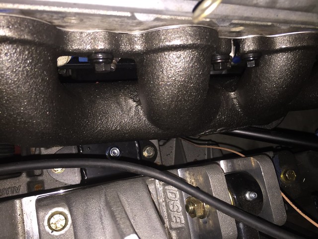 Had the engine in and try to work out the exhaust manifold set up. Tried the stock truck manifolds, and that did not work. The manifolds stuck out too far, and hitting the steering shaft. Finally rolled the dice on a set of Holley cast iron manifolds, and it fit.