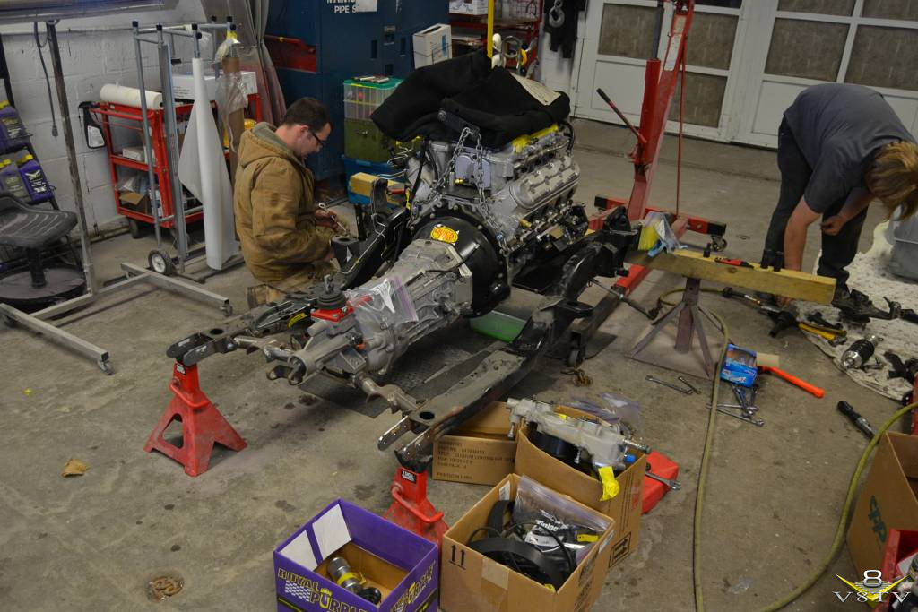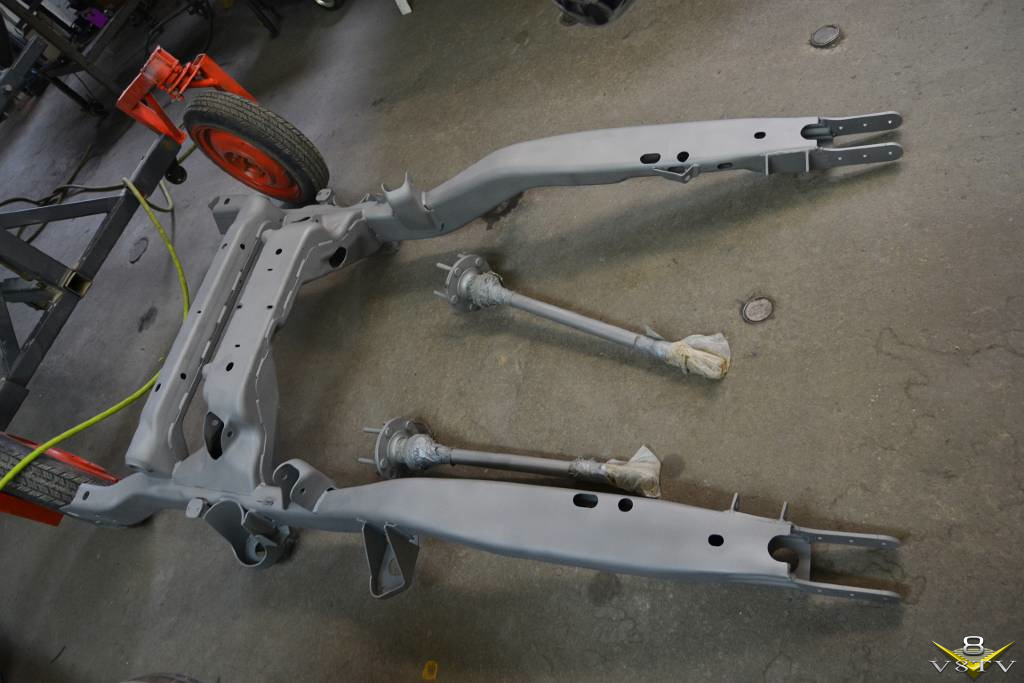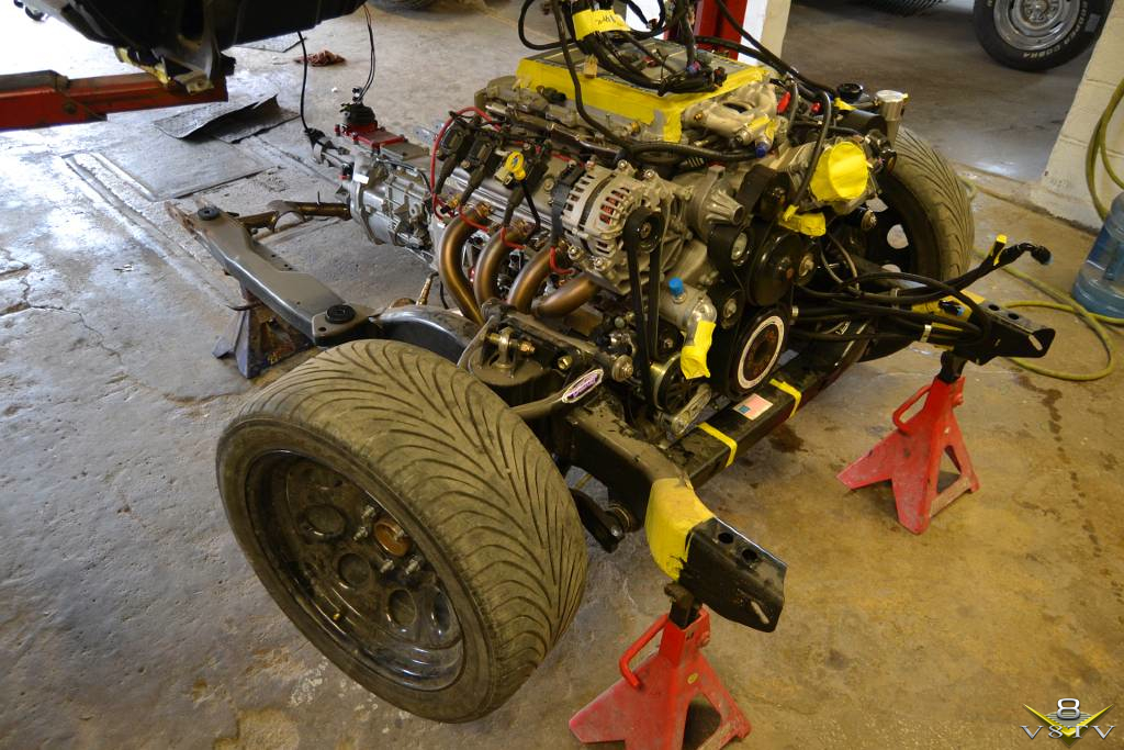 The engine and transmission were separated from the subframe and it was disassembled for detail work and paint.