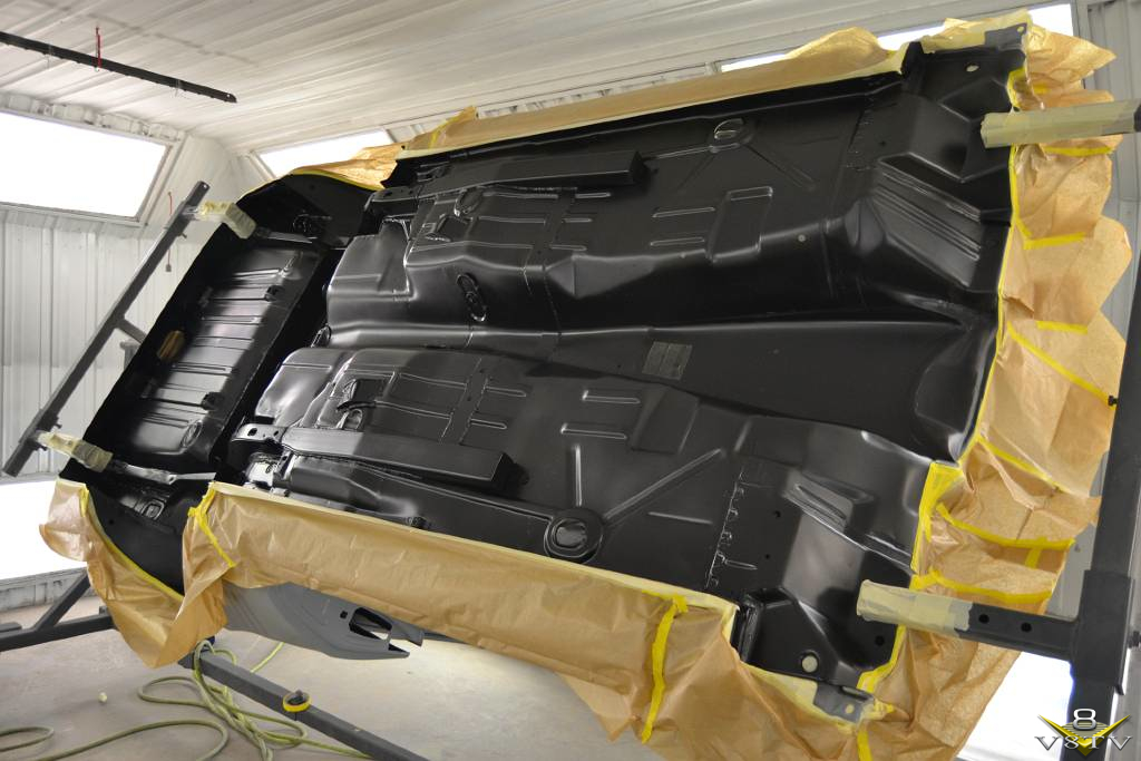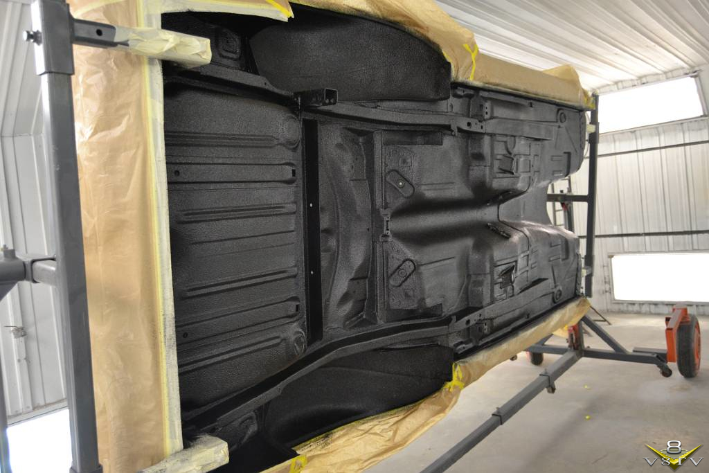 The the bottom side was painted black with Dupont Imron industrial coating. Next, the bottom of the car was coated with 3M body defender to prevent chips.