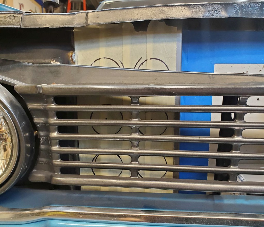 Air will come in through holes in the core support just to the side of the radiator opening and also from around the headlights. I still need to drill the holes but I'll do that before I take it to powder coat.