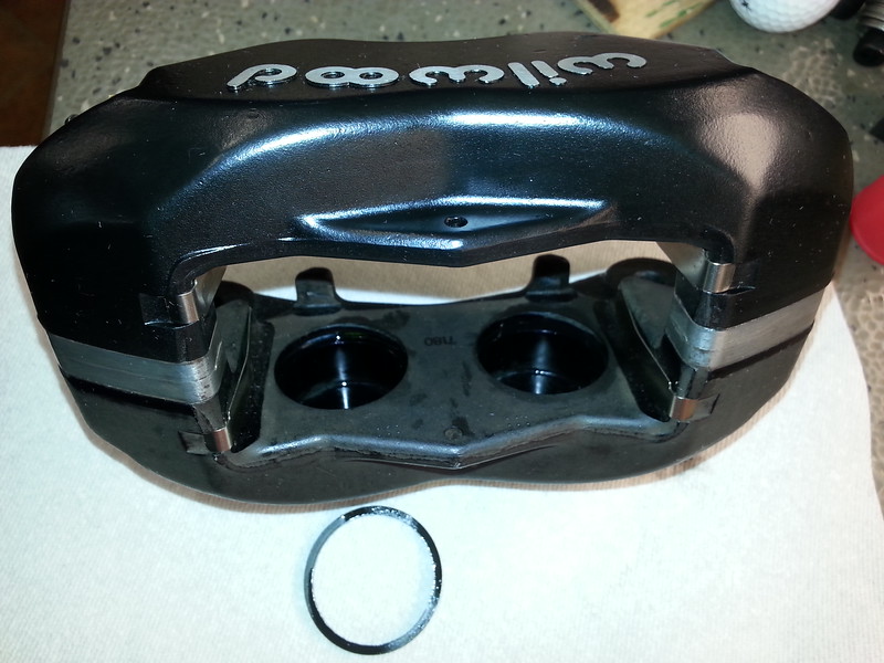 While positioning the calipers I noticed one pad didn't want to compress back into the caliper with reasonable force...........so off the calipers came again and I pulled all the pistons and seals figuring if one's questionable the other probably are too.