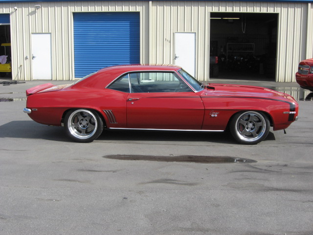 Thought I would share a few pics of my friends 69 Camaro. It is powered by a Fulton built 427 aluminum small block with a TKO 600 5 speed and a DSE built 12 bolt. List of mods from DSE include, subframe, mini tub, dash, gas tank, firewall filler, wiper motor, frame connectors, hood hinges and filler panel. It rolls on Fikse wheels and 6 piston Baers. it also has a custom leather and houndstooth interior. Plus a ton more pieces i have not listed. A huge thanks to Jeff Peters of Mountain Muscle (423 367-2435) for all the fab work and assembly he has done.