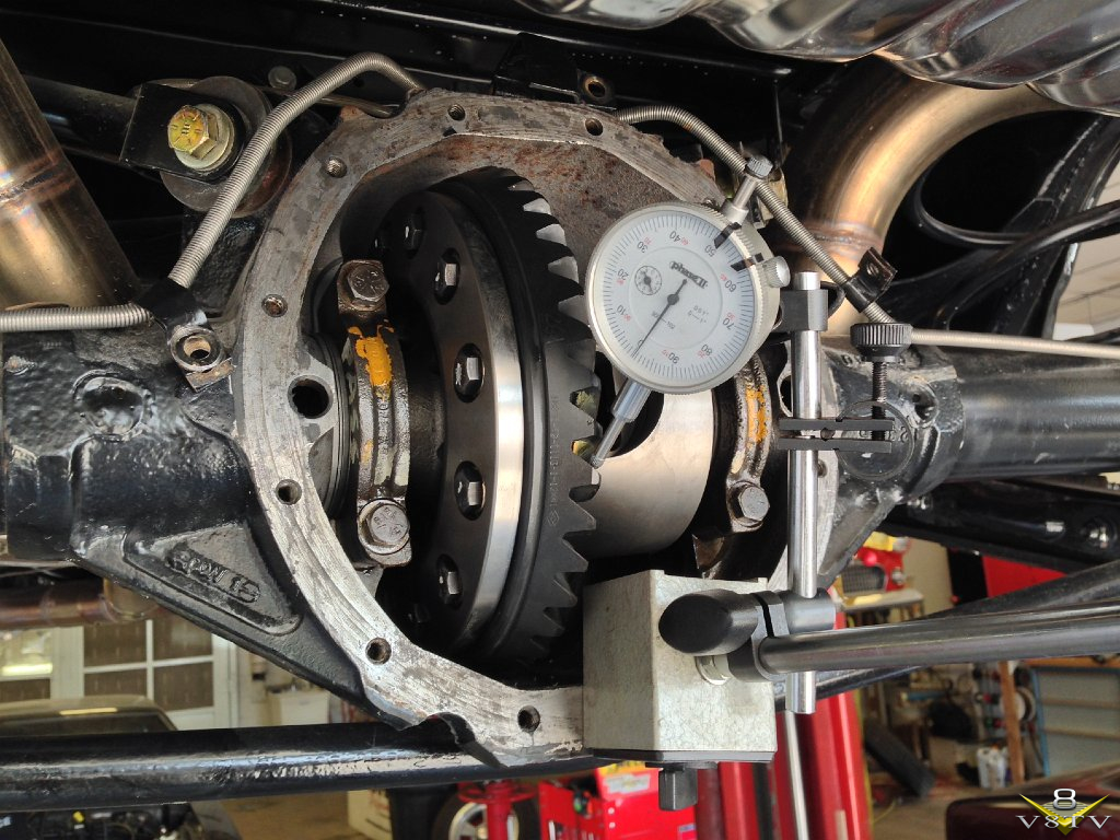 It was finally time for an initial test drive where we tuned the carburetor on a chassis dyno. We learned several things after warming up the car and running it on the rollers. We found the used rear differential to be worn out and the gears and housing were rusty. The posi unit chattered like crazy and the clutches were gone, so we installed a new set of gears and a Detroit True Track differential to remedy that problem.