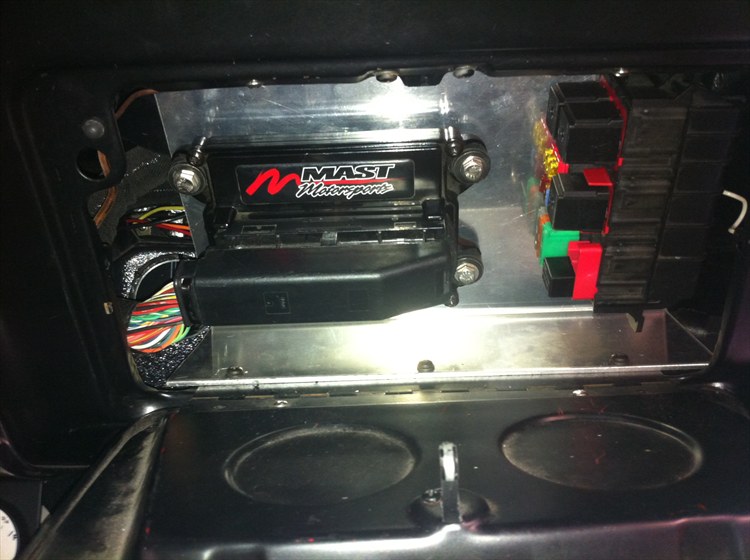 After another 10 hours of trial and error fitting everything. This was like a jigsaw puzzle for me. Even after a bunch of mock ups I originally had the ECU about 1.5" higher and the fuse/relay box mounted laterally with the fuses pointed straight out. Everything fit and then I tried closing the glove box. Anyhow enough moaning about this simple part taking me forever.