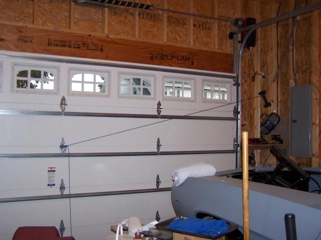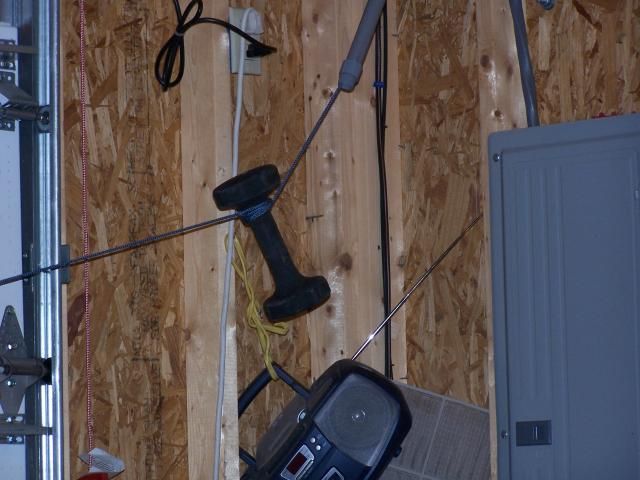 I tied the line to the garage door because the weight kept hitting a shelf below the panel and would only pull 3' of wire at a time. I have a video of it working but can't load it to Photobucket for some reason. I'll try again later. All in all a very productive day.