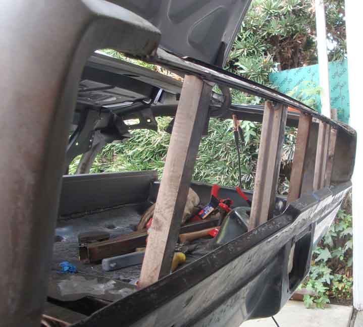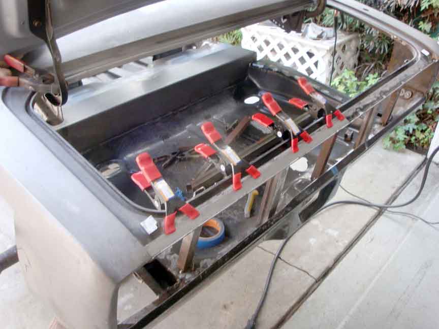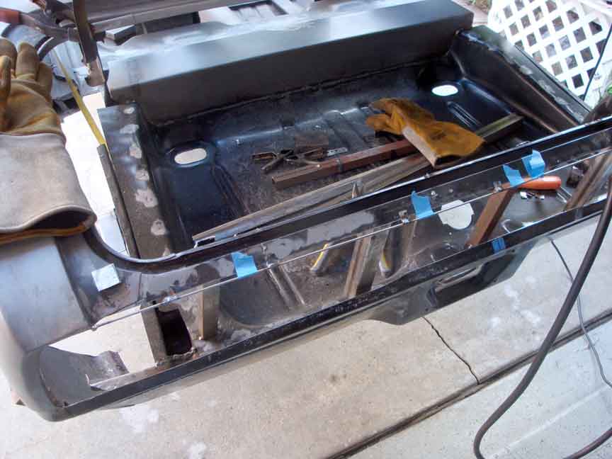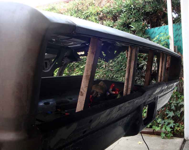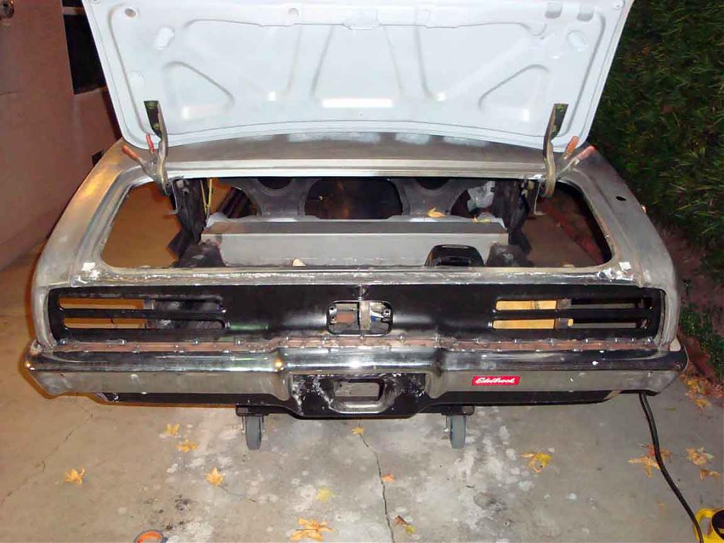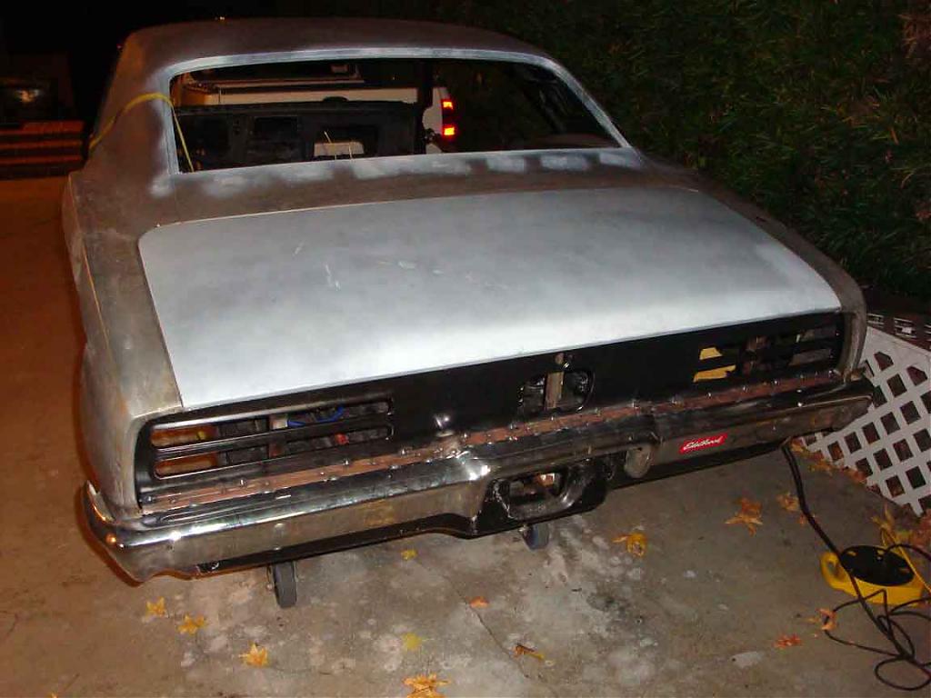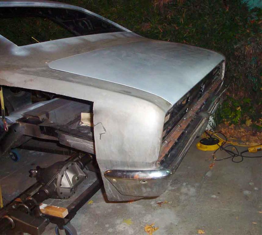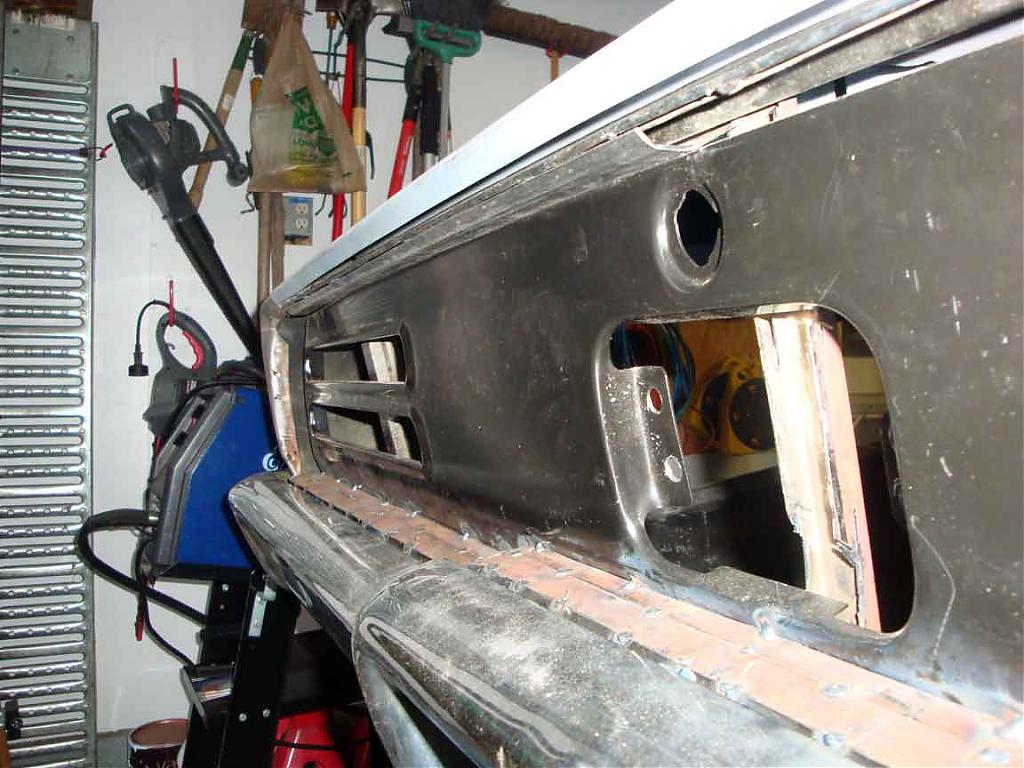 I did get the base of the recessed panel and one area of the top. Pics are below, it should be enough to get the idea. Of course, I'll be trimming and modifying the bumper once the quarter panels are back on and the overall width of the car is determined (I am widening it a little)