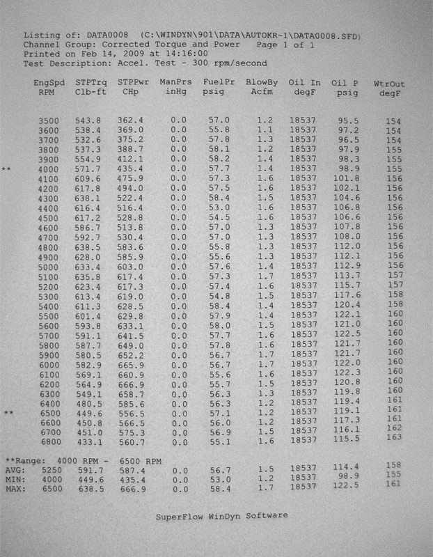 Here's the dyno sheet.... Katech thought it would make close to 650hp with their cam and the Kinsler IR intake, but it made slightly more.