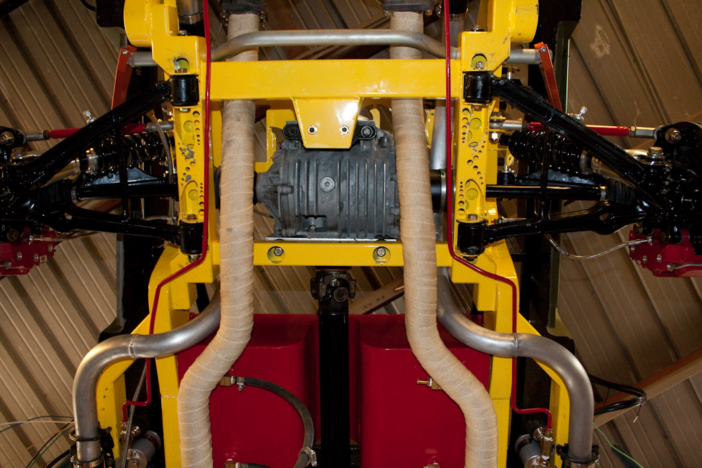 cool project Russell, nice meeting you at SEMA. Watch out for those brass 90 degree fittings coming off the gas tank, they are quite restrictive compared to the mandrel bent full flow 90's the AN companies offer. Not good to restrict fuel on a twin turbo setup, plus any restriction is tough on the electric fuel pump(s). May not cause you an issue, but if you notice fuel pressure dropping with the boost turned up check those first.
