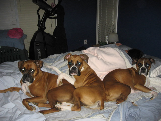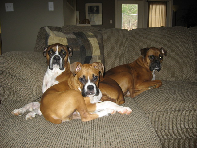 We have three Boxers. Two brothers that turned 8 this past August named Tucker and Gus. Melissa and I got a 3rd as a Christmas gift a couple of years ago. His name is Brutus. In the past I have lost two Boxers, Rowdy and Nikki. We have several friends that own Boxers. They are AWESOME dogs!