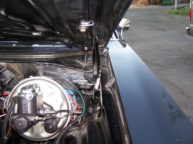I had time today to try and get the hood to fit a little better, and I just happened to find out my hood hinges are bent, and need to be replaced. The left was worse then the right, but luckily I had an extra set. I threw it on just to mess with the hood and it came out pretty well. Those pics will be put up tomorrow, but here are a few from earlier today. I also installed the arm rest, A-pillars, and did some fine tuning on the deck lid.
