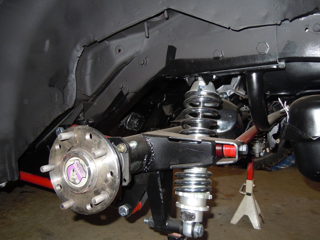 Since I was able to get the car turned in the garage I knocked a bit of work over the last few weeks. I rebuilt the suspension and added tubular A arms along with Hotchkiss 2 inch drop springs.