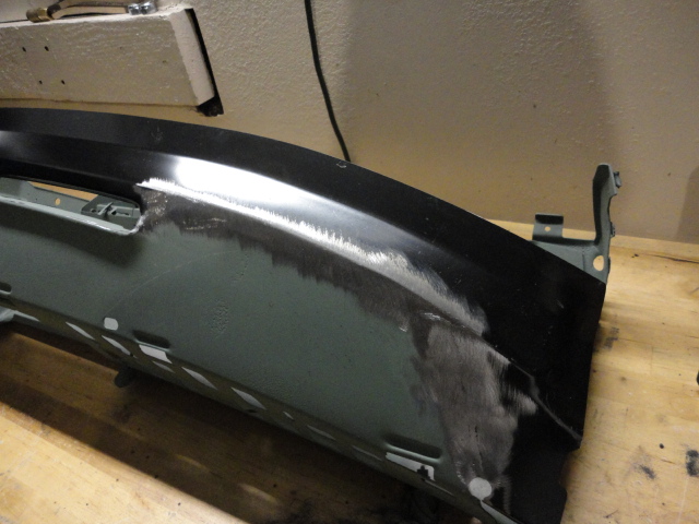 started playing around with an extra, damaged front lower valance and well got it into my head that I was going to use the round bezell for my rear exhaust. so I cut a whole on the rear panel and molded as much as possible went to a local diesel truck shop and got a foot of 5" exhaust. once I was happy with the way it was fitting the contour of the car ( both inside and out side) got to welding and grinding. and well 1 week later that how it came out.