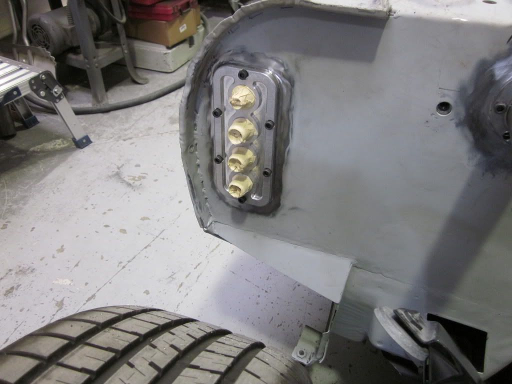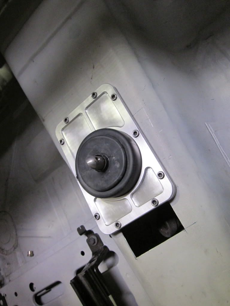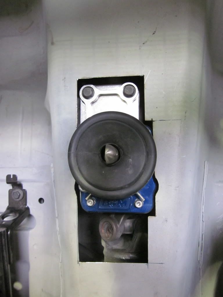 The transmission on this car is out of a 2005 GTO.. so we ordered a B&M replacement shifter but did not like the way it held the shifter in place.. Made a new retaining plate.. with shifter access plate from the interior side..