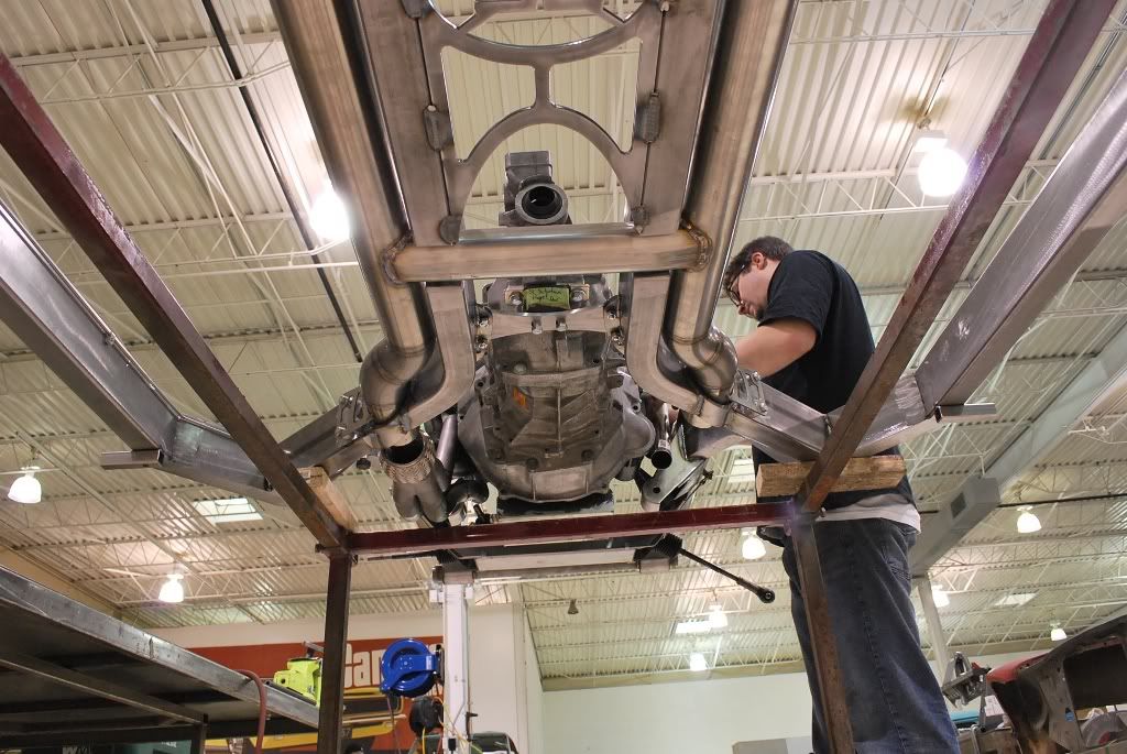 We built a custom 3-Link on this car and made custom main rails that allowed for a side exhaust.