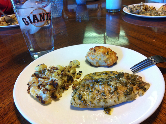 I’m not a big soda drinker. Maybe a couple per week. I drink a lot of coffee though, probably 5-6 big mugs a day. I’ve cut it back to 2 a day and usually one is a decaf. I’ve always drank a good amount of water but have amped it up. For snacks I’ve been bringing fruit to work. Breakfast is usually yogurt and fruits. For lunch I’ve been doing salads at Subway. For dinner we’ve been grilling a lot of chicken and veggies. Here’s a stuffed chicken breast we did the other night. (green peppers, pablano, onion, spinach, salt, pepper, and a little fat free zesty Italian dressing) We also grilled up some asparagus as a side. It was pretty good.