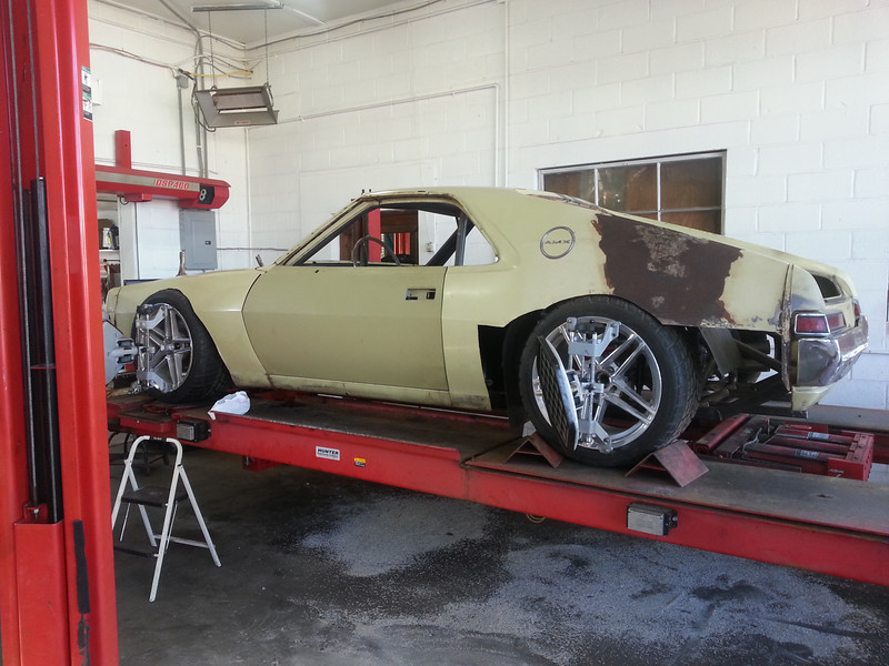 Finally got the ungodly awful 4x4 lift blocks out, which were locating the rear axle. Got the car to my buddy Troys front end shop for an alignment, and to square up the rear axle, got some strange stares taking it over there. It was pretty damn close for eye balling it, the quarters will be next on the list, can't wait to see how it turns out.