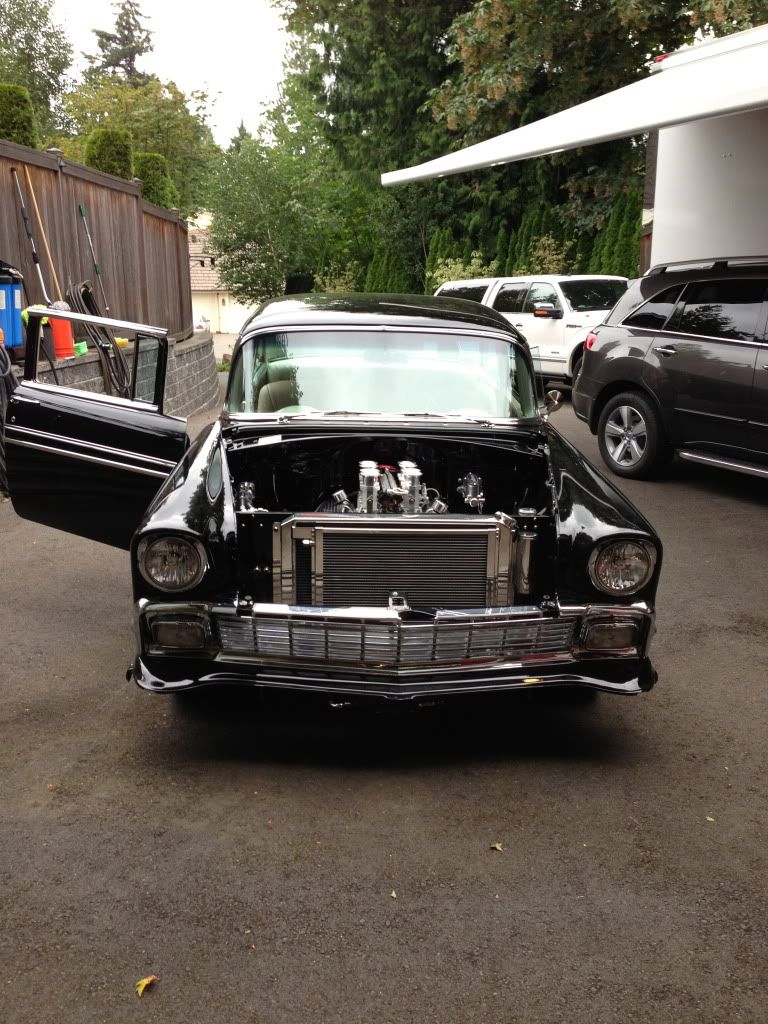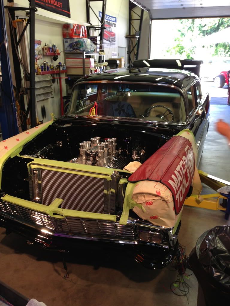 Put the hood on -- and spend some major time getting that just right... with the new Billet Specialties hinges. And then off to his house! He's happy!