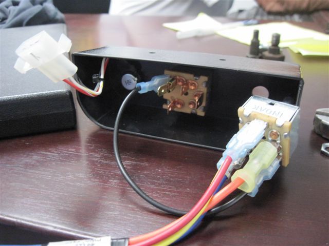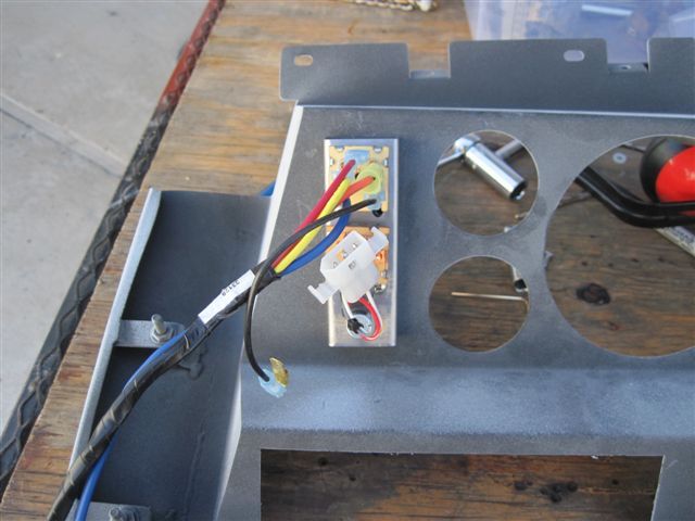 Wiring up the dash continues. The VA combo heat/defrost unit comes with a cheapo plastic control panel. Na-ahh I say, so BoS takes the guts out and mates it to their billet AC control panel. Still working on getting the billet knobs on the panel. More on that later...