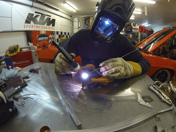 One of the helmets on the MIG machine is set up more for sheet metal tacks if I don't just want to close my eyes.
