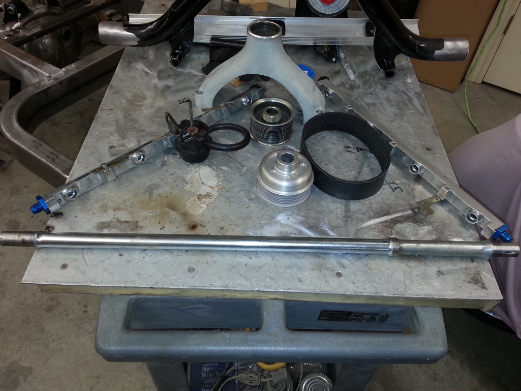 Had to take the supercharger apart, 1. separated the blower for the manifold, 2. take out the cooling radiators to clean and install new fittings, 3. Take all parts off of the superchargers, and replace, 4. take rotors out, check for damage, (none), 5. check for clearance, new bearings, put back together, check clearances again, 6. replace all external bearings, 7. replace all O-rings and seals, 8, put blower and manifold, (the new LS-3 manifold), back together,,,,,done