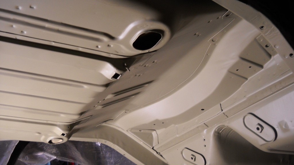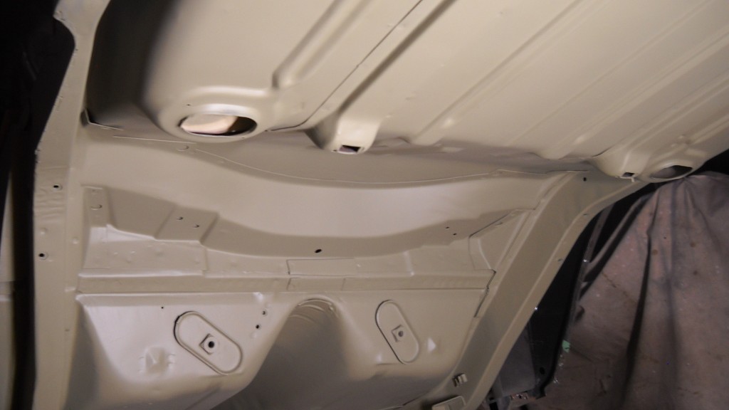 Good day when the engine stand is empty! Got the underside of the trunk in epoxy and finished buttoning up the engine, still need to set valve lash and finish painting. I wanted to get the engine in and determine the driveline angle for the 4 link onto the 12 bolt.