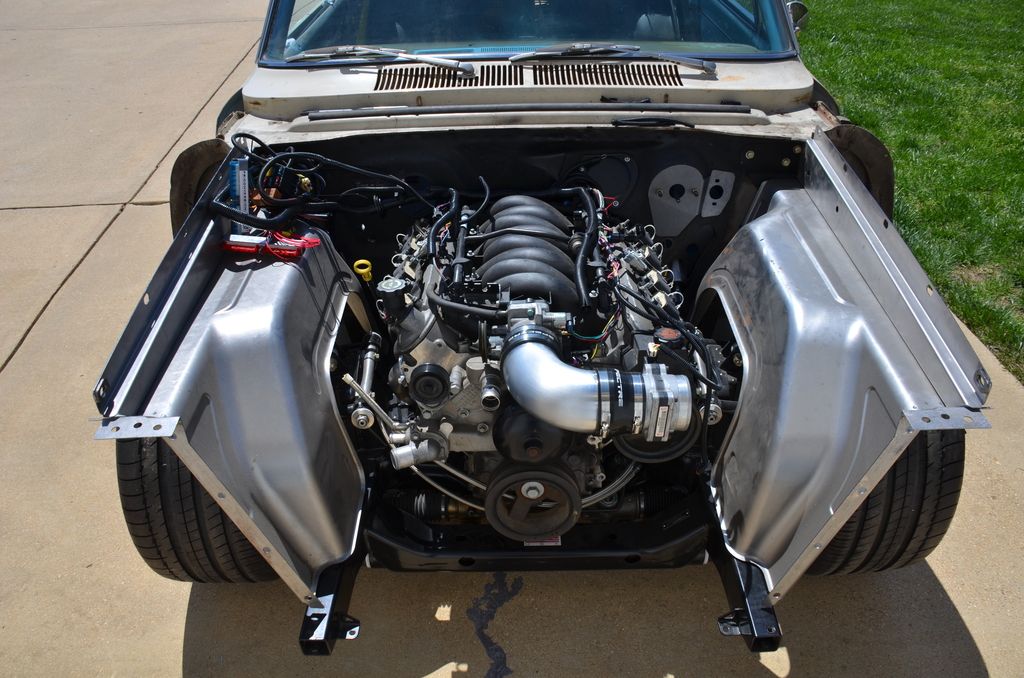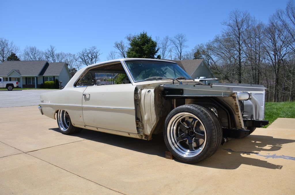 Also, since you have your rear-end bolted in. Transfer a chalk line down the center of your car on the concrete floor beneath (plumb line down "center" of your front sub-frame and mark on the slab, then plumb line down center of your rear frame rails and mark on slab,,, connect/snap line connecting the two) This will give you a decent reference "centerline". You should find if plumbed up to your crank/cam centerline that it is 1/2" off to passenger side. You also should find your pinion center the same...
