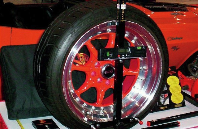 The key to the QuickTrick system is that it uses to component (a horizontal and vertical bar) yet places three reference points on each wheel, and also has an independent reference to a horizontal and vertical “zero” as well. This allows highly precise measurements to take place, and the design overall allows the flexibility to be used on cars of all shapes, sizes, and wheel arches (think of a covered wheel arch where the top of the tire is inaccessible – such as a ’57 Chevy). Bret Voelkel of Ride Tech saw the value immediately and was the first to jump on the distribution bandwagon! Today QuickTrick products are sold in a number of places familiar to all gear heads.