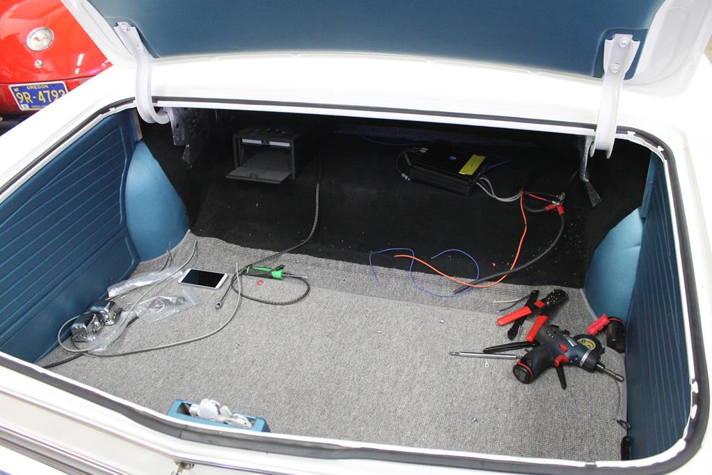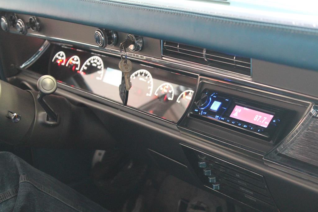 My 65' is white with blue interior just like that, the gray carpet and dash looks nice.