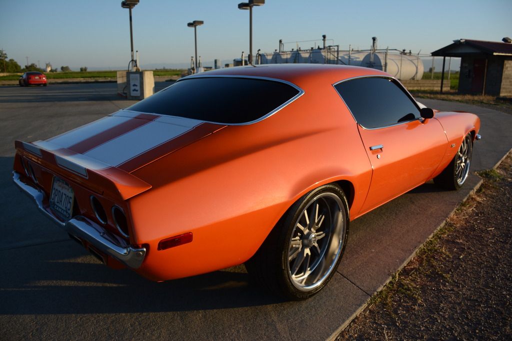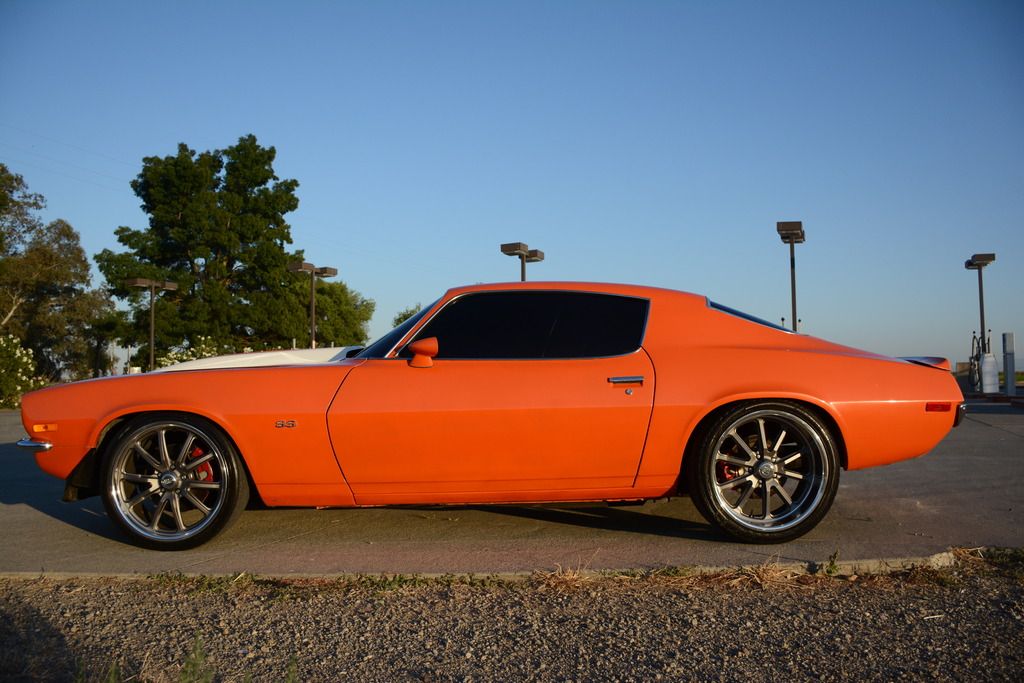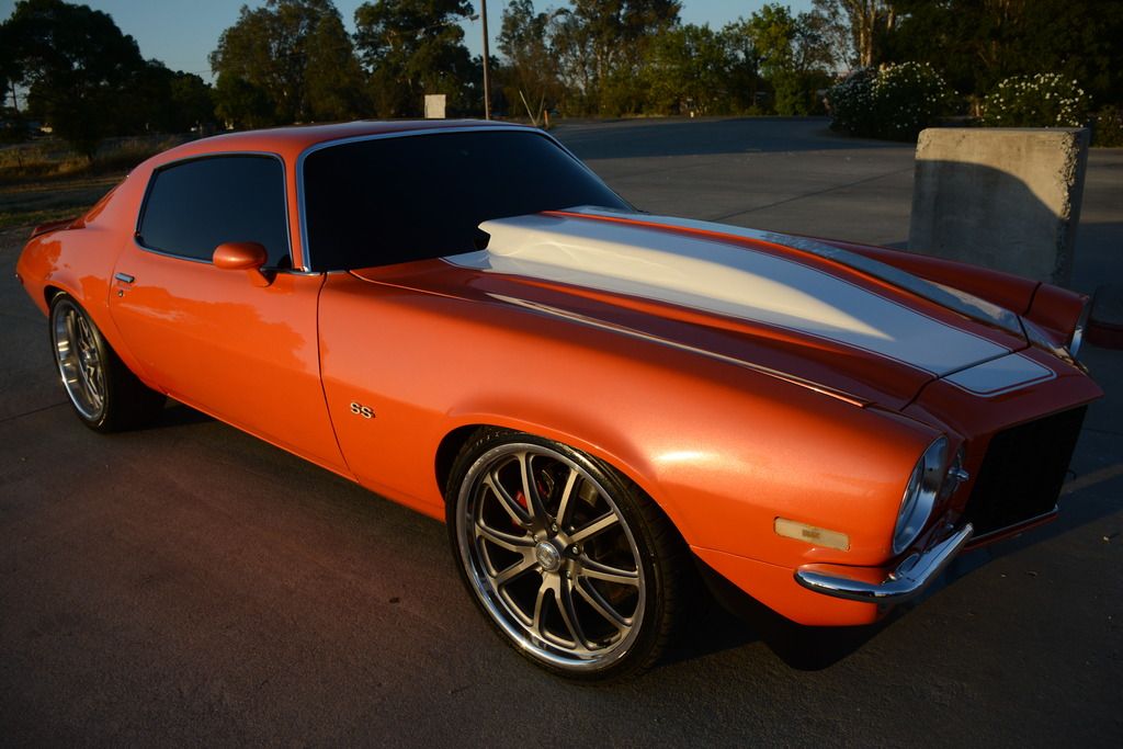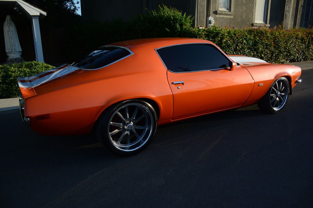 Up for sale is a pro touring 1970 split bumper camaro resto mod with aluminum ls3 heads, ls3 intake and aluminum ls2 shortblock. This is not an lq iron motor nor a 350 sbc with a turbo 350 transmission. This is the real deal. A champion radiator with electric fans are equipped on this vehicle. New radiator hoses were added along with a new master cylinder. Has a modified cold air intake for the ls swap. The wiring is all shrink wrapped and wire tucked. The transmission is a tremec tko600 5 speed manual with an aftermarket clutch and a billet shifter ball. The interior is full black with an ls1 center console. Billet specialties steering wheel was installed that feels amazing. Billet doors handles. Aftermarket doors sills were installed. The windshield mirror displays outside ambient temperature which is nice to have. Has brand new vintage air a/c compressor, condenser and drier just needs under dash system to have air conditioning. The rear end has 3.73 gears installed with limited split differential. Suspension has been all rebuilt with new bushings and ball joints.Some koni suspension was added as well. Has a 1-3/8 hotchkis hollow front sway bar and global west solid frame bushings and subframe connectors and quick ratio steering box. Brakes are red c6 corvette brakes setup with 13" rotors up front and 12" rear with new 9 inch brake booster and Baer adjustable proportioning valve and hurst line lock. The wheels are staggered. The paint is house of kolor orange metallic paint that pops and shines extremely well. Door jams were painted as well. The whole underside of the vehicle was coated in black. Car has custom center exhaust with slp powerflow mufflers. Windows are tinted and has new clear headlights up front with an black aftermarket lower valance. SS emblems were added. Gauges are led autometer ultra lite II. I am a perfectionist when it comes to detailing, therefore nothing but the finest products were used to detail the car. 25 hours were put into detailing this car. The car is also garage kept and sits under my cover. Im also open to all types of trade. Try me! I can have the car shipped anywhere in the U.S. I am willing to add cash for another vehicle depending on what you have. Car is located 45 minutes north of Sacramento, CA. For further questions you can call me at 5307748968. If I don't pick up leave me a text or call me back. I will describe the car to the best of my knowledge. It is sold as is. No warranties expressed or implied. Non refundable. PLEASE DO NOT CALL ME OR TEXT ME IF YOU DO NOT HAVE THE CASH OR NEED PERMISSION FROM YOUR WIFE. IF YOU NEED A LOAN, PLEASE GET ONE PRE APPROVED AHEAD OF TIME. IM GIVING IT AWAY AT THIS PRICE. CANT BUILD IT FOR THIS PRICE. DO YOUR RESEARCH ON WHAT IT COST TO BUILD THIS CAR, THEY ARE SELLING FOR UPWARDS OF 100K ON MECUM, BARRETT JACKSON AND EBAY.CAR IS FOR SALE ON EBAY ALSO.