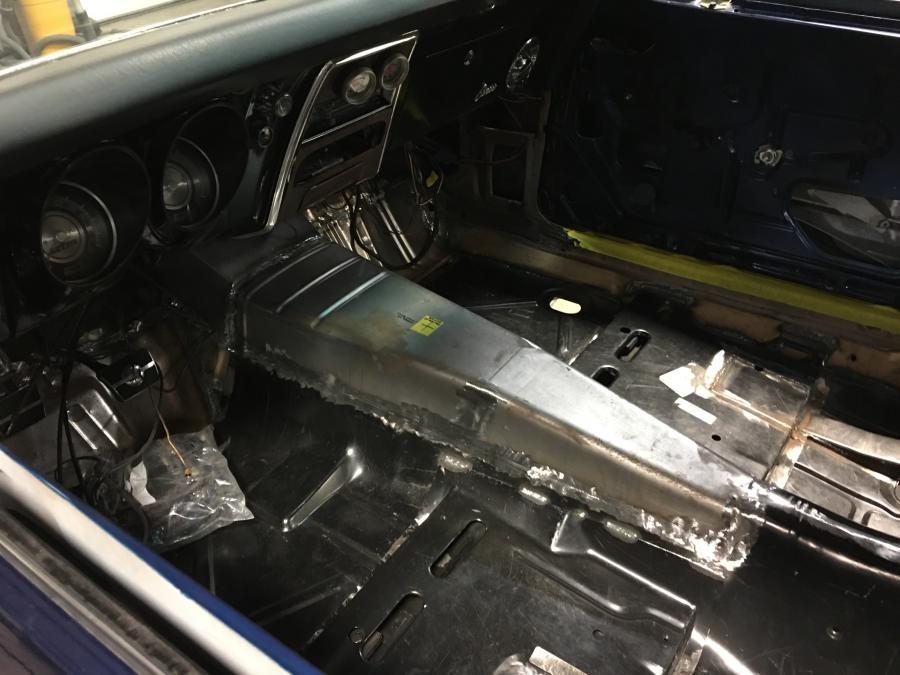 Trans tunnel patch is welded in. I'm really happy with the end result! It seems like such a shame to go cuttin' up all that new sheet metal but if there's one fear I've gotten over, it's the fear of taking a saw, welder or grinder to this thing! Once you've had to drill a couple of holes in a $9,000 subframe, everything else pales in comparison!