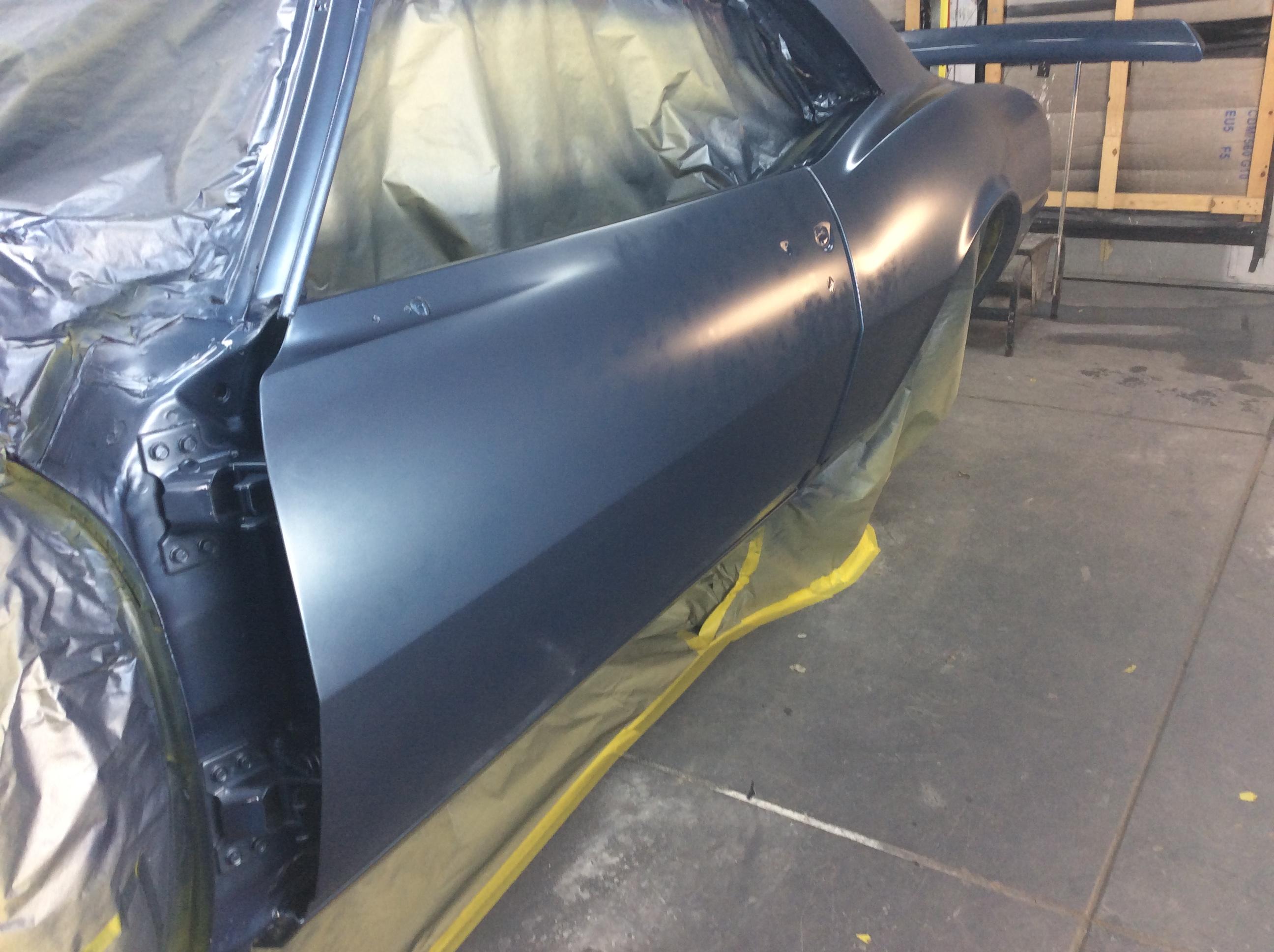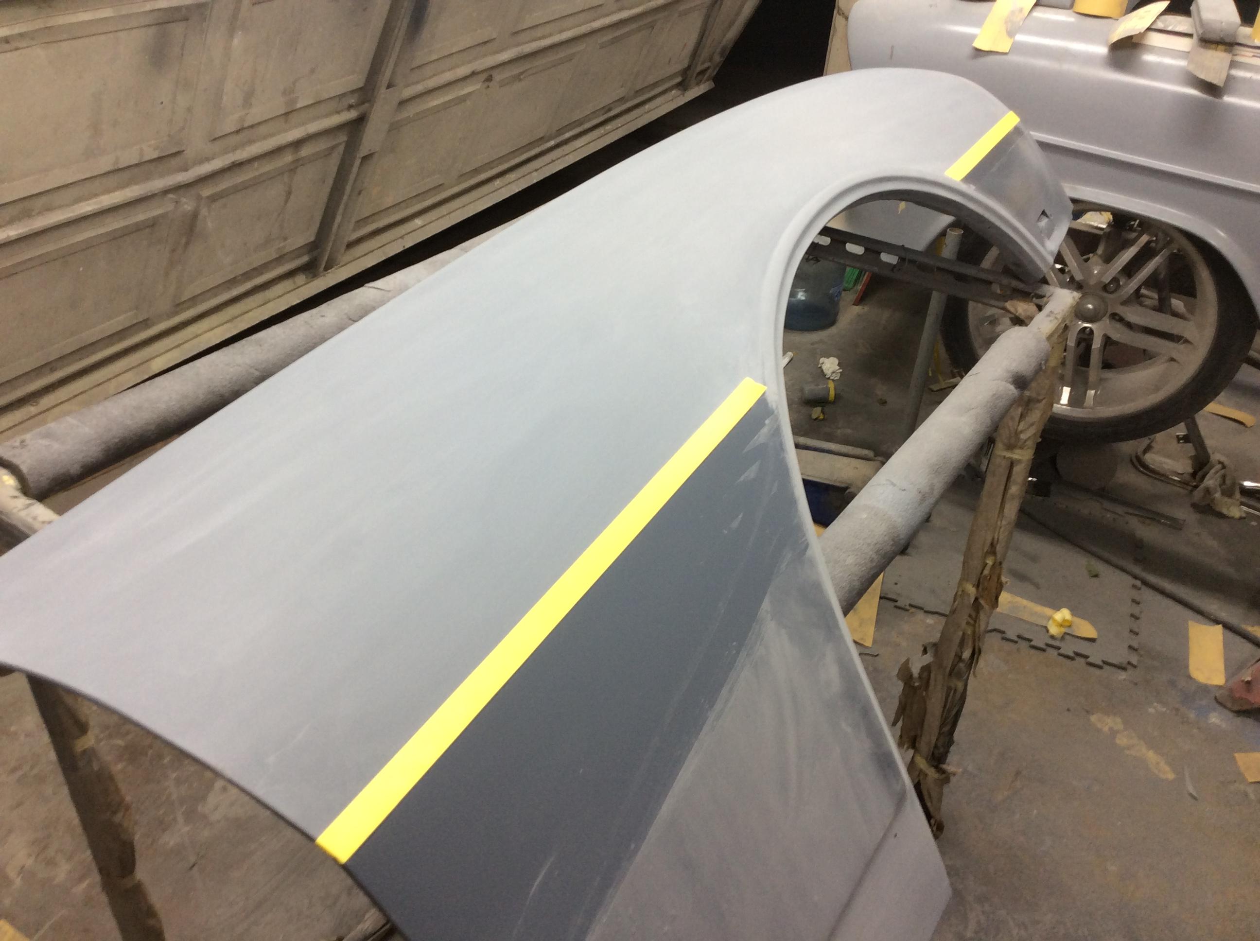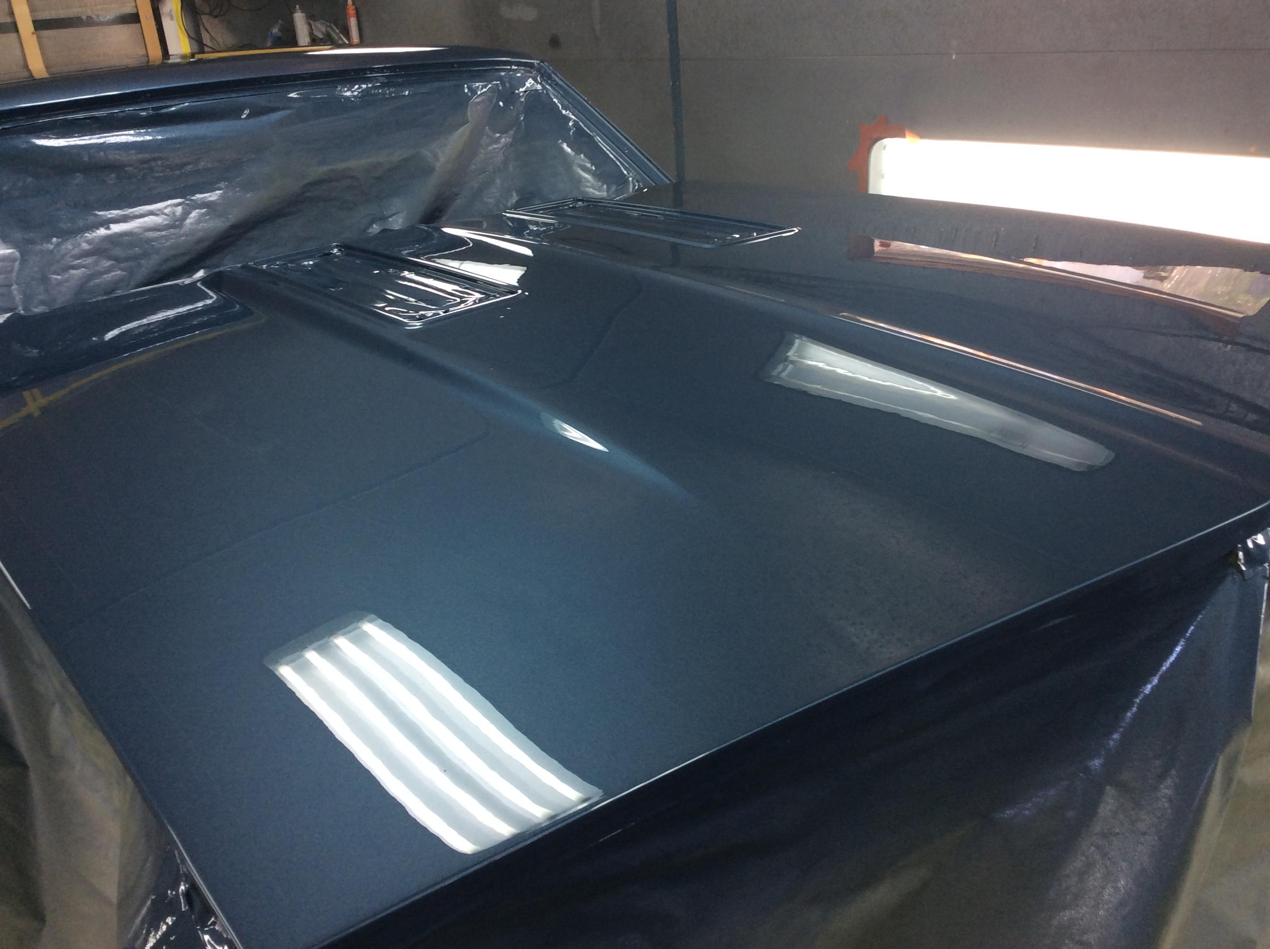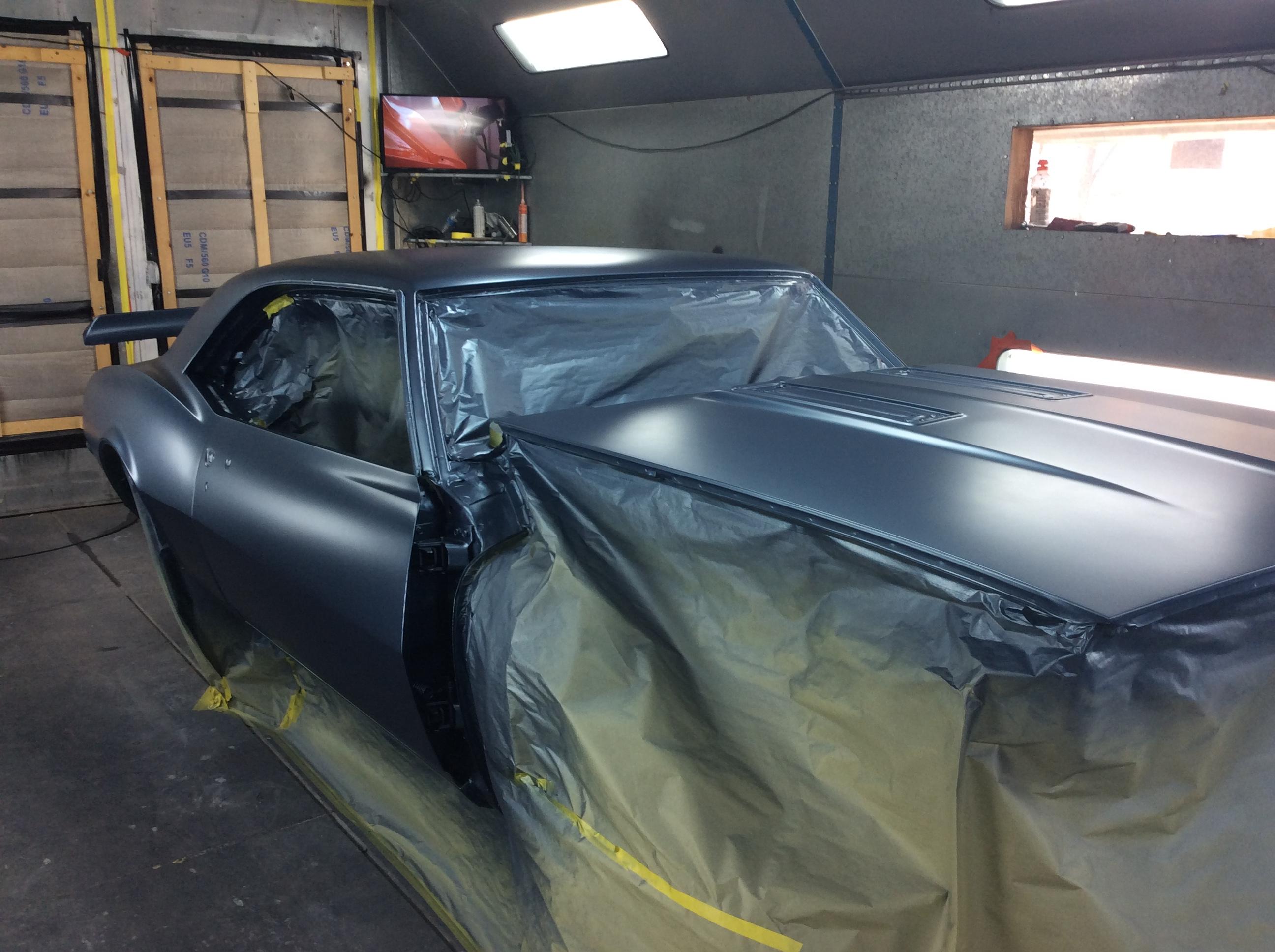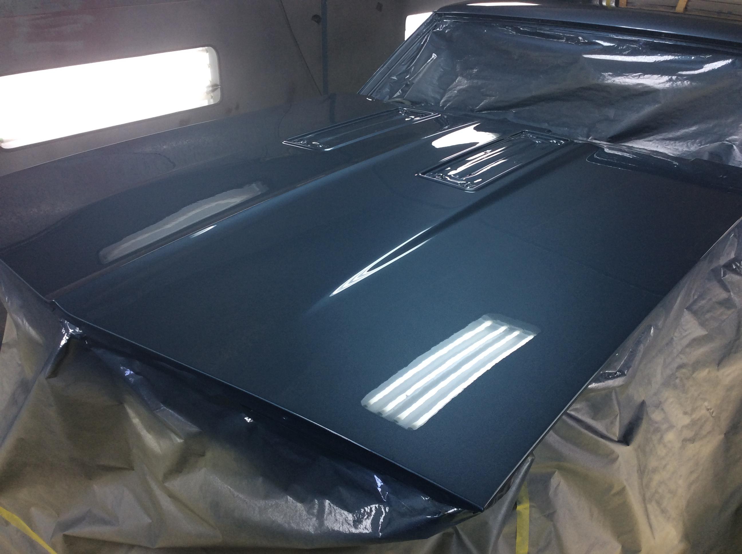 Color time!! James wasn't feeling the original butternut yellow. I told him any color as long as it was an original 68 color. So it was going LeMans Blue. Then literally a week before it was going to get sprayed he saw this color. He wanted it to stand out from the rest... So here we are. Very pleased with the color choice. Jim mocked up the front end because we were going to go with a bumble bee stripe, but then opted not to.