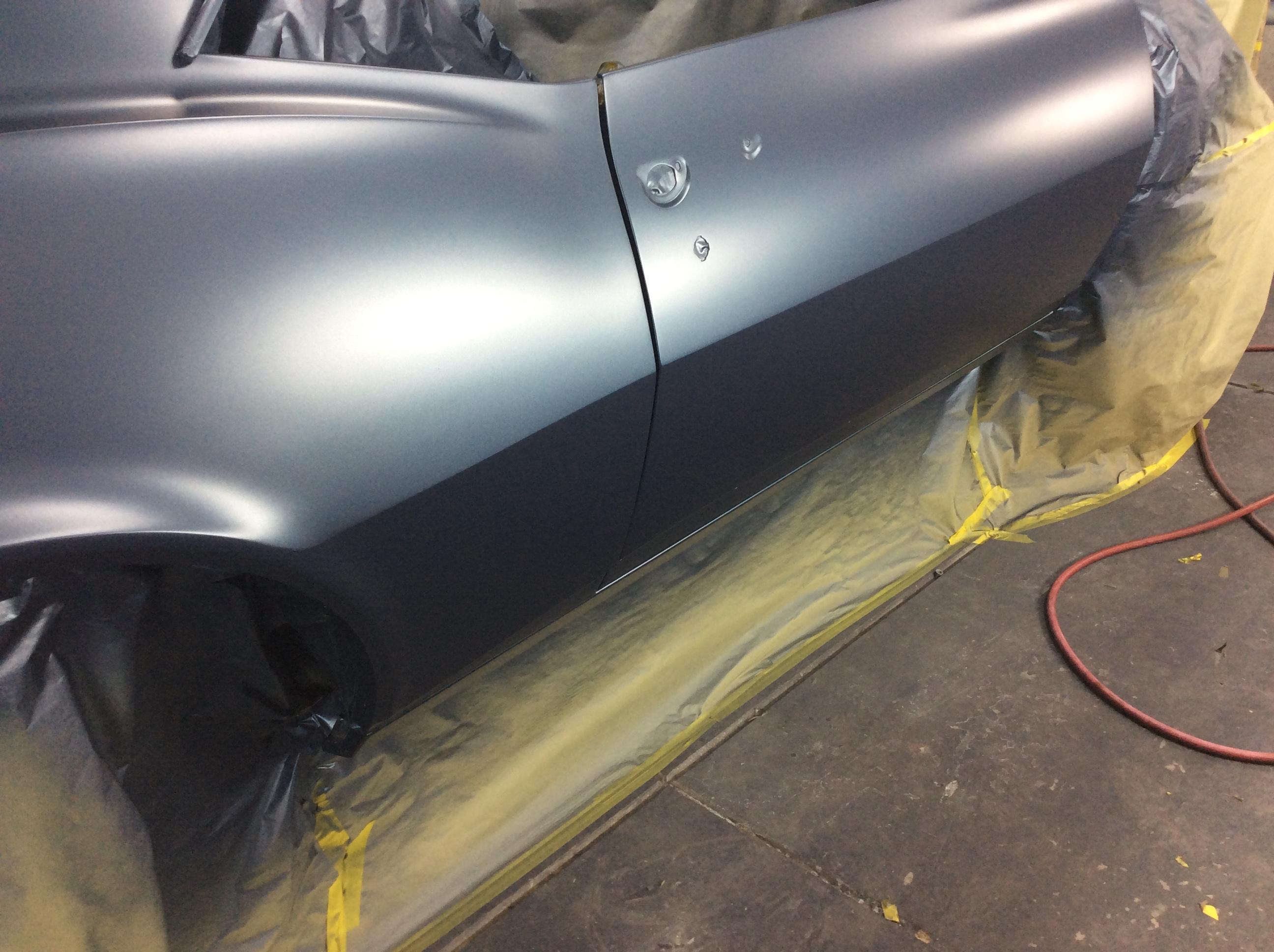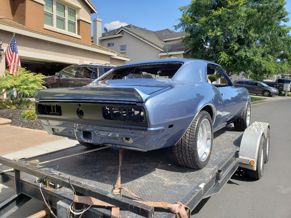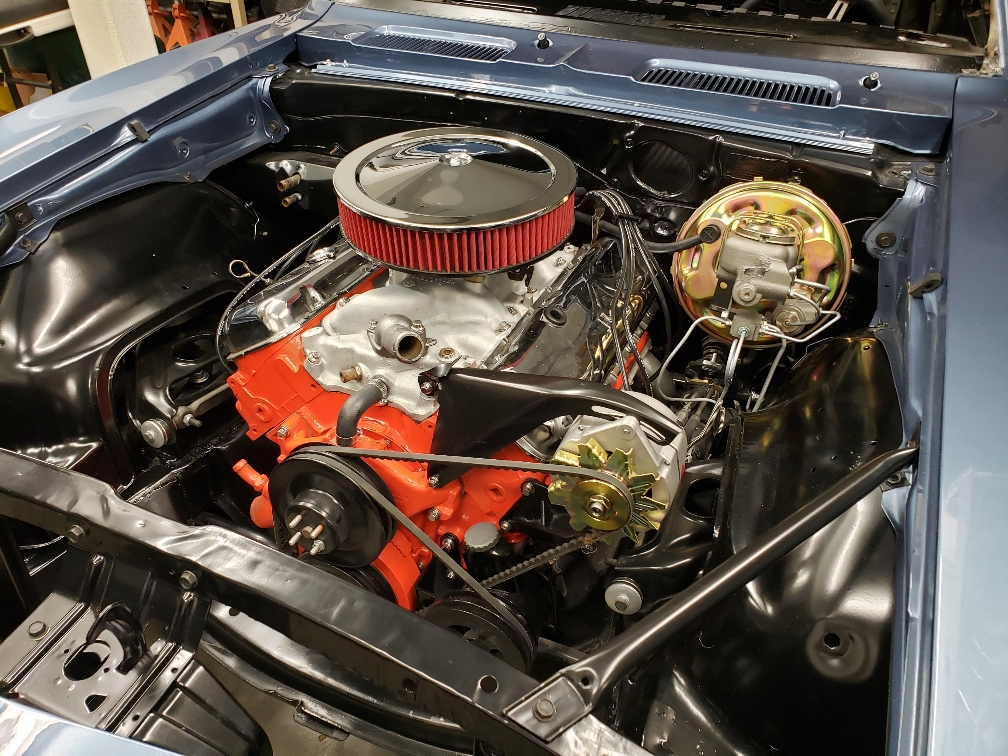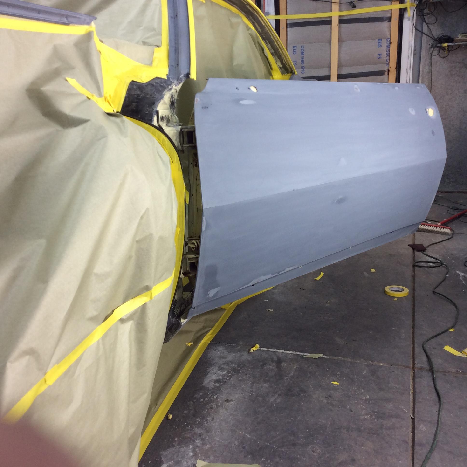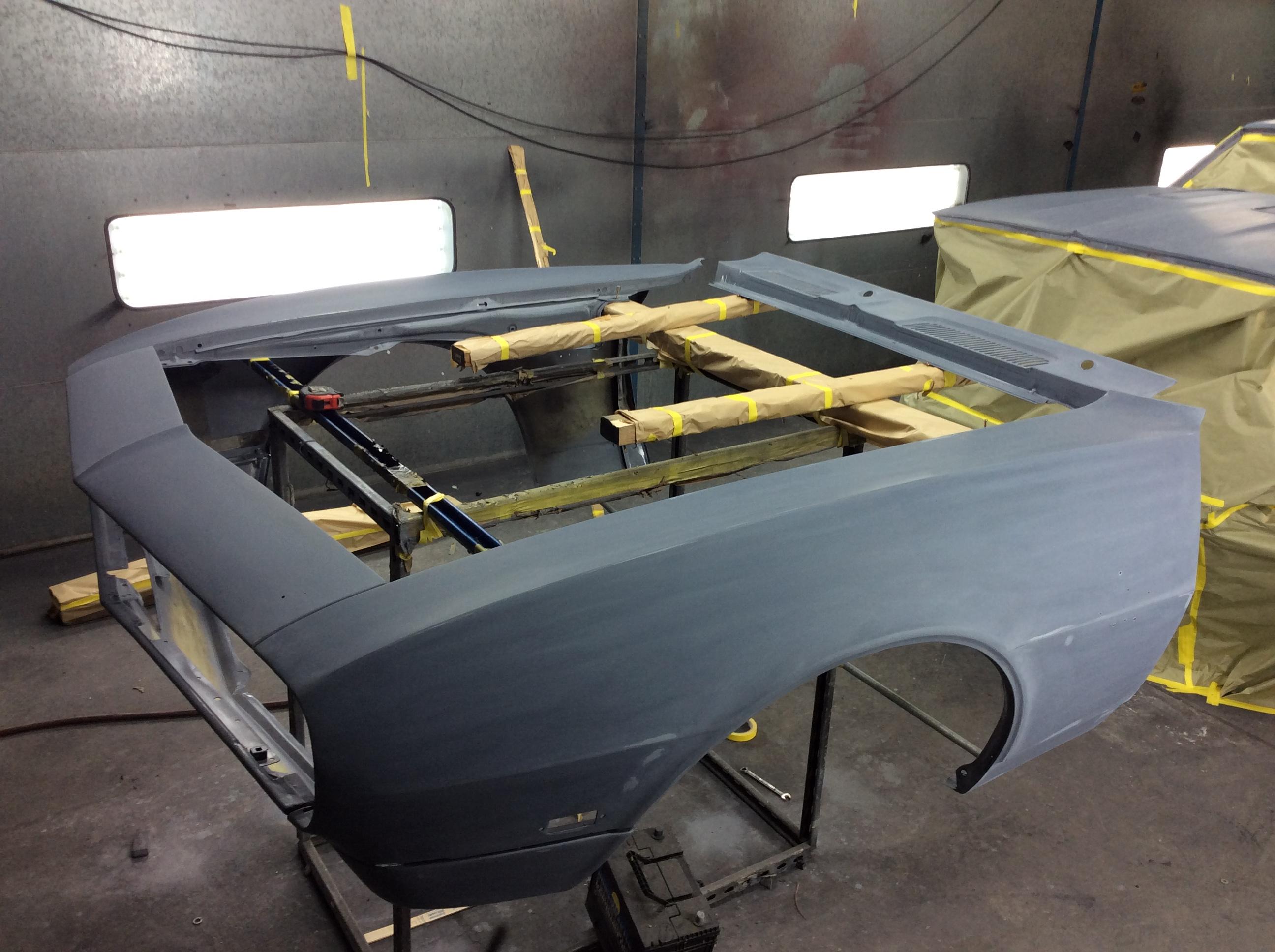 Color time!! James wasn't feeling the original butternut yellow. I told him any color as long as it was an original 68 color. So it was going LeMans Blue. Then literally a week before it was going to get sprayed he saw this color. He wanted it to stand out from the rest... So here we are. Very pleased with the color choice. Jim mocked up the front end because we were going to go with a bumble bee stripe, but then opted not to.