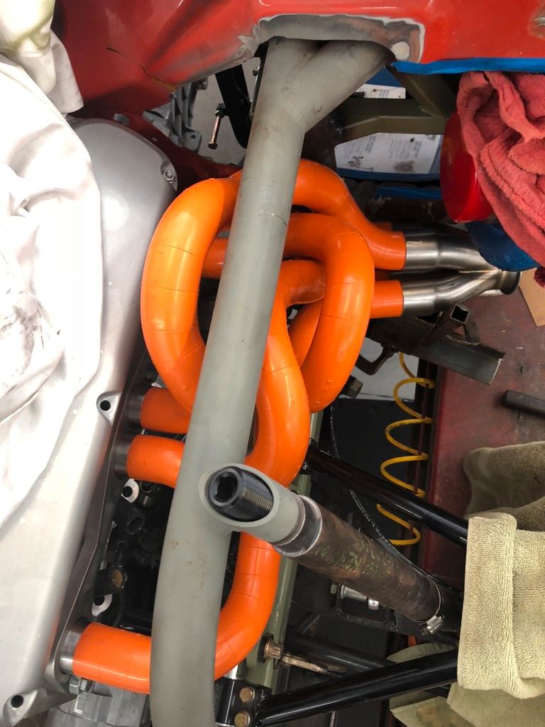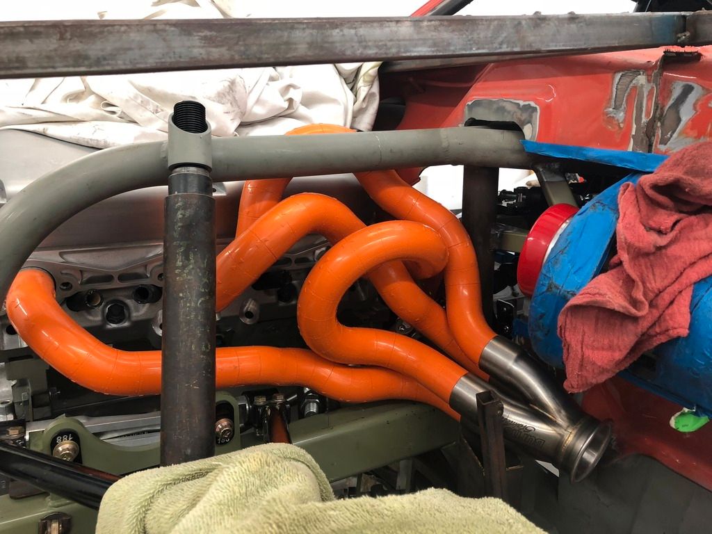 I want the turbo's high enough to drain (don't want to mess with a sump, another pump, check valves, etc), but far enough back to help with weight distribution.