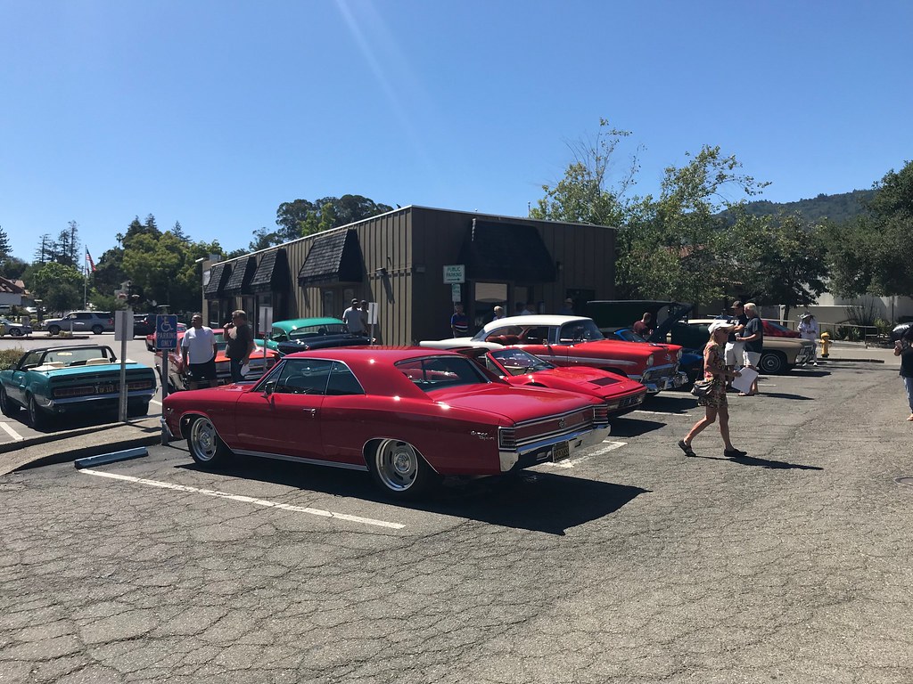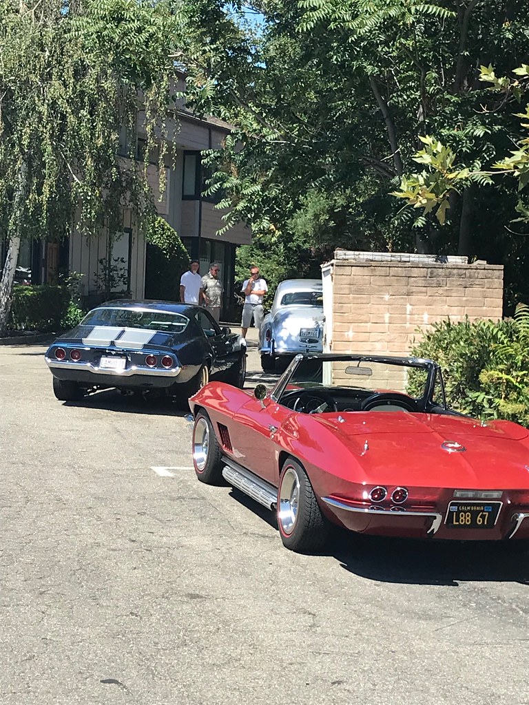 did a pretty good heat stress test on my car this weekend - about 2-3 hours of stop and go driving for a cruise event as part of a car show in Saratoga / San Jose CA. Some pretty cool cars showed up - this red Chevelle had a nasty sounding BBC and manual trans and 305's tucked under the back, and the C3 convertible was a L88 car!