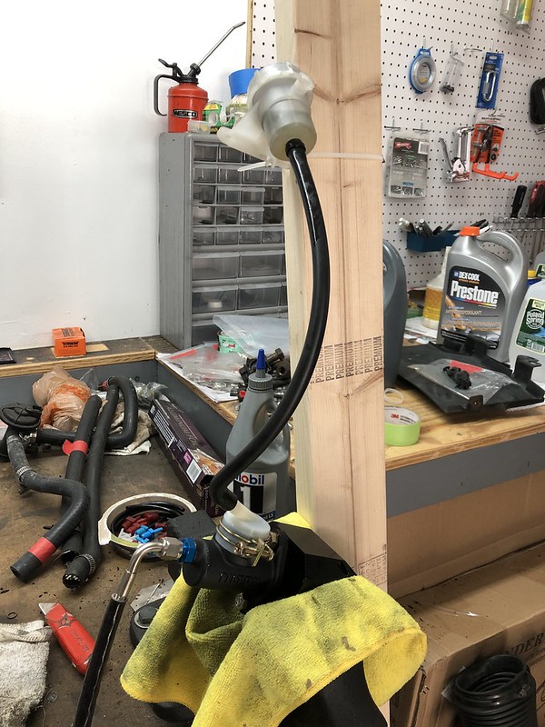 I will start with the fronts. I removed the sway bar, front springs and the bump stops so I could cycle the suspension through it's full travel.