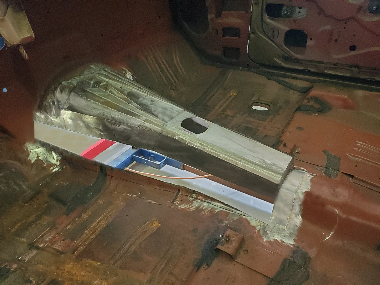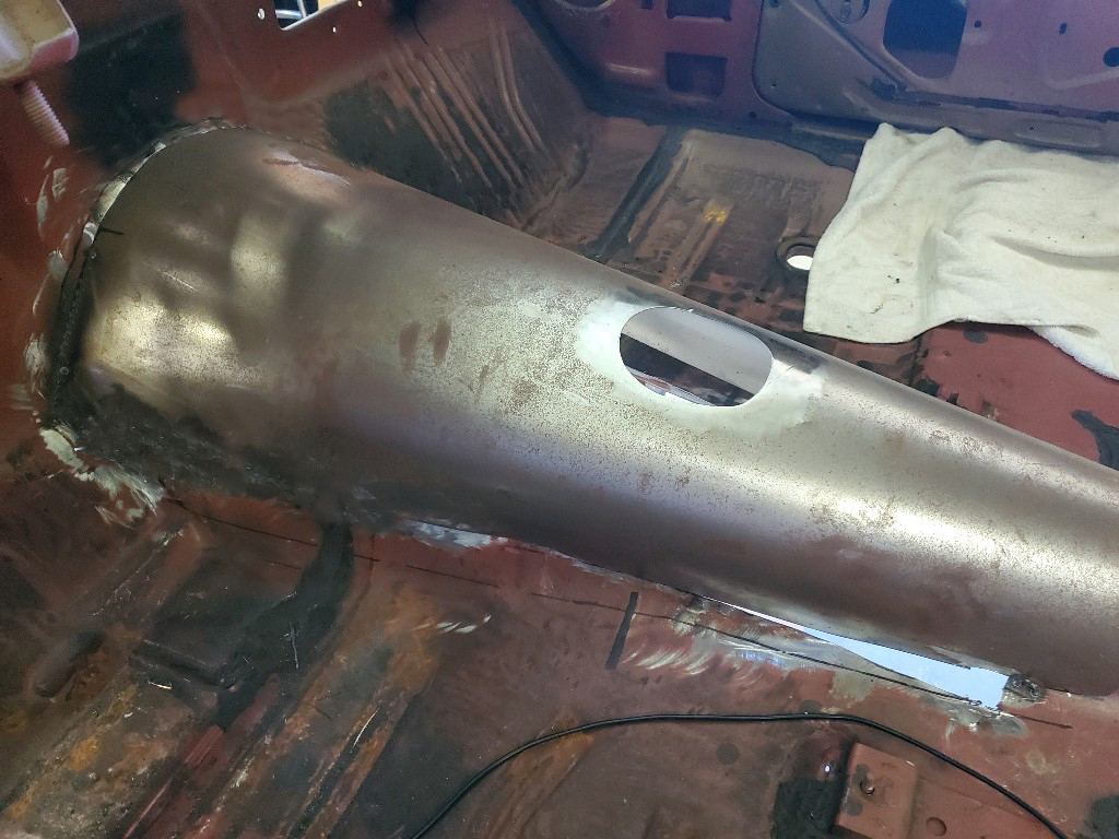 Well, got something done lol. I wasn't happy with the original tunnel mod I made for the T56. The normal ones from American Powertrain, Tin Man Fab, Bowler, etc. were all too small overall, so I spliced the Tin Man unit with the rounded piece I was using before. Still have to fit two side pieces, that part should be easy. Top pic is what I had, and the bottom pic is what I ended up with. I like the flat top better.