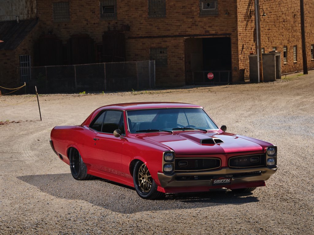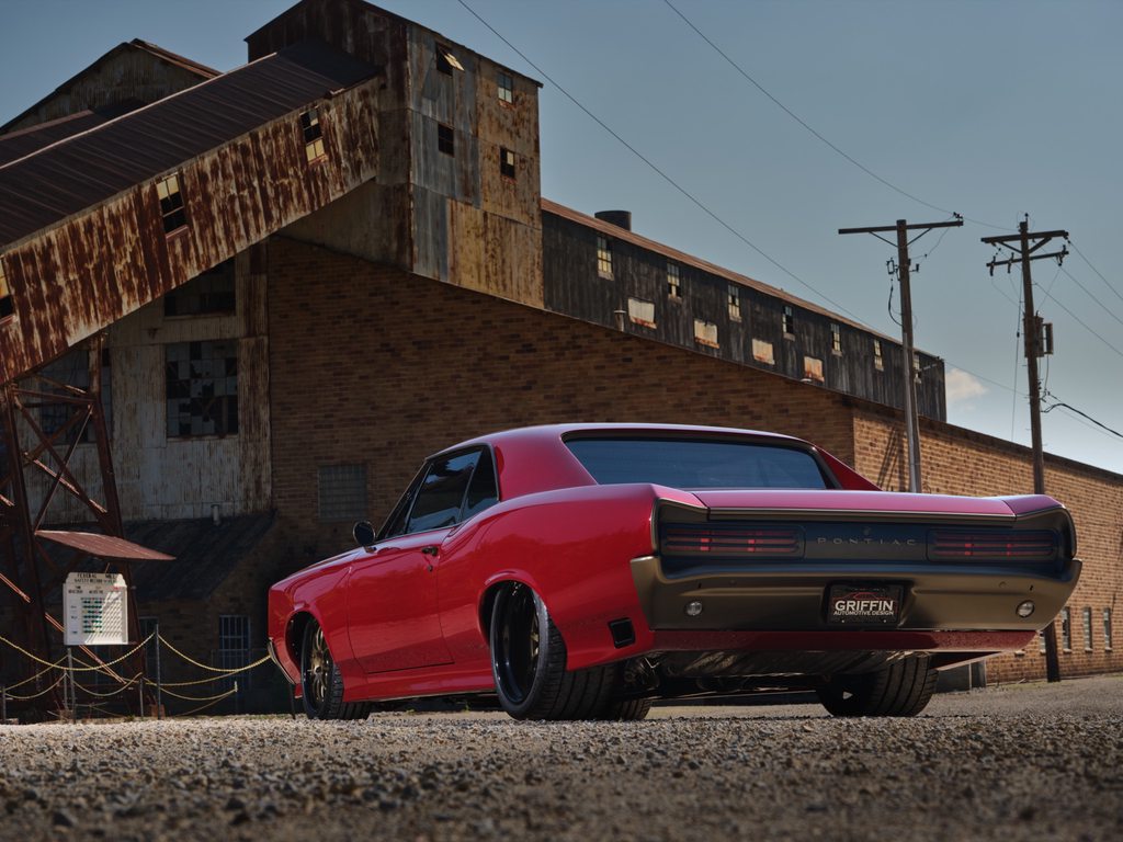 Angry goat. This stunning 1966 Pontiac GTO was built by Griffin Automotive Design and was a Street Machine of the Year contender, at the 2025 Goodguys Summit Racing Nationals, in Columbus, Ohio. It's powered by a supercharged Chevrolet Performance LT4 mated to a 6-speed manual transmission and rides on Ridetech suspension, Wilwood disc brakes, 245/40ZR18 & 325/30ZR19 Michelin Pilot Sport 4S tires, and 18x8.5/19x12 Forgeline forged three piece GZ3 wheels finished with Anodized Bronze centers & Gloss Black outers. See more at: https://www.forgeline.com/customer-g...reiter/cgk2898