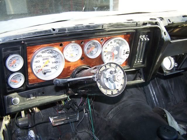 Interior includes a customized dash with all auto-meter gauges, with gauge pod and hiden tranny temp gauge that flips down. New dash pad, carpet, bucket seats in front, with new door panels and custom rear interior pieces. Custom center consol. 4 6X9's with sony amp. CD player. New headliner.