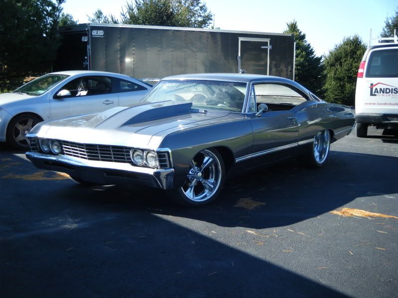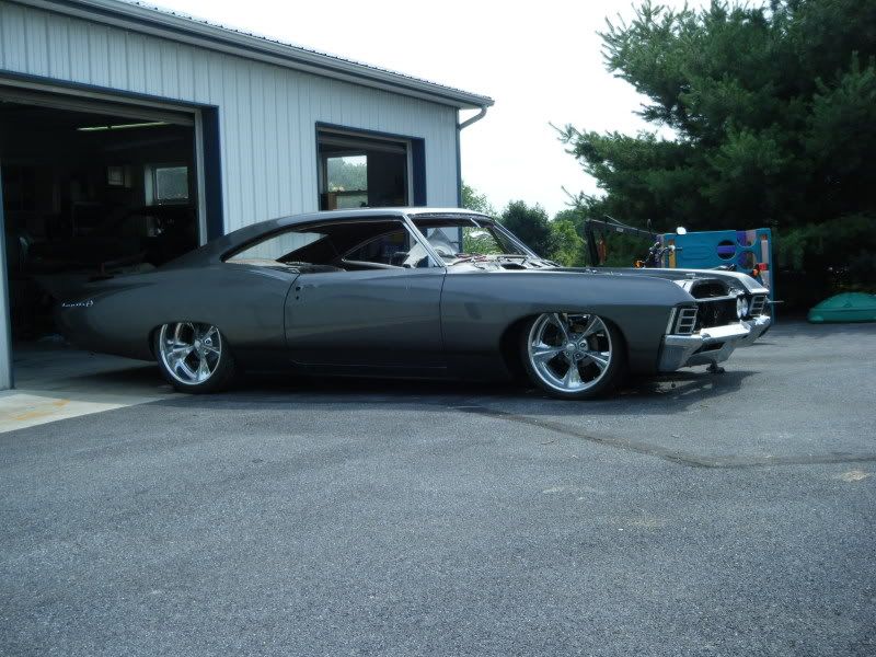 ...So, '67 Camaro project with my laying around stuff out of my black 'vert. 468 BB and YSI blower, braked th400, 12 bolt/spool, 35 splines etc. Complete Calvert suspension front and rear. 30x13.5 ET Streets, caged, lightened, slammed and running low 9's "Street car"