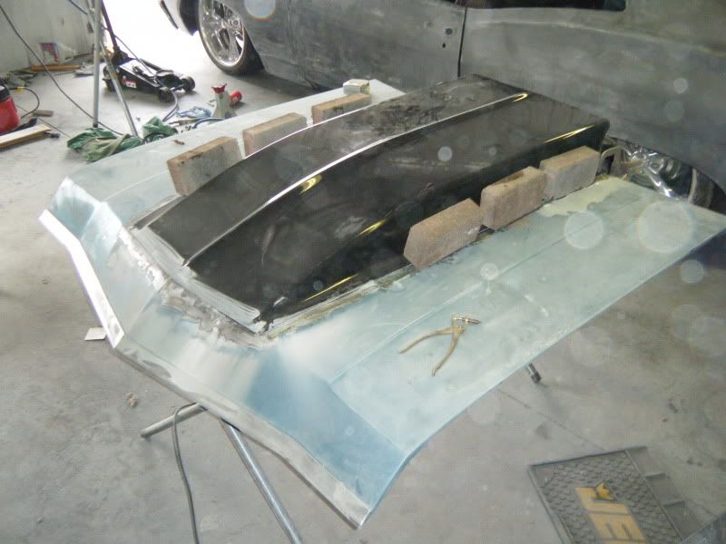 i got the hood done and on the car, needs a quick buff and some more time on the gaps. pretty much all i have to do before the wedding is get as much interior in as i can and get it running well.