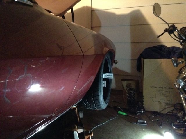 The backs i'm debating 12-12.5 rim. Overall the rear is a very tight fit even with the tubs. I think I screwed up and should have stretched the tubs more when I installed them. Another 1/4" would have made things much easier. As of now with a 12.5" setup mocked in place I only have ~3/8 clearance inside and out when the suspension is fully compressed. I think it's going to rub. Most likely I'm going to try to cut the floors and stretch the tubs this weekend.