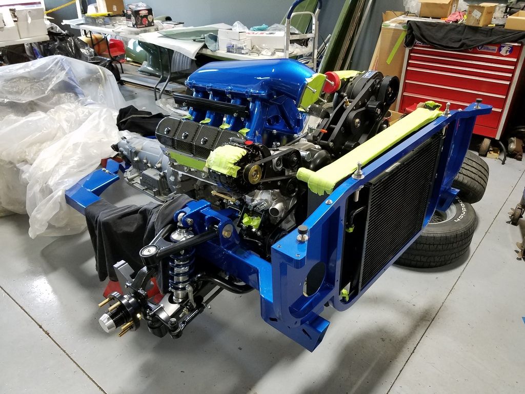 She sure looks sweet with the engine sitting in her! The @procharger D-1x setup, combined with the true carbon fiber valve covers, ultimate headers, 4L80E transmission and the Holley HI-Ram intake look sweet mounted on the frame!