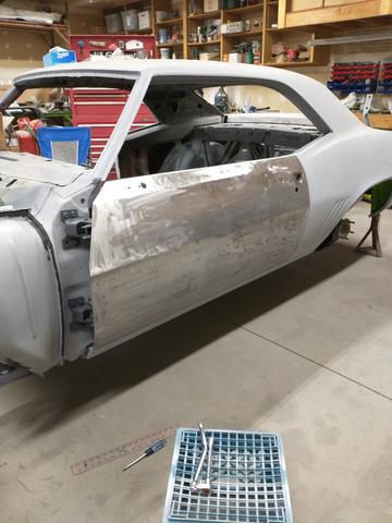 Test fit #2. Re-mounted the doors back on the car. I'm going to pin the hinges this time around. Also need to fit the new Cowl hood, and Anvil parts, since I obtained all of these after the car was torn apart.