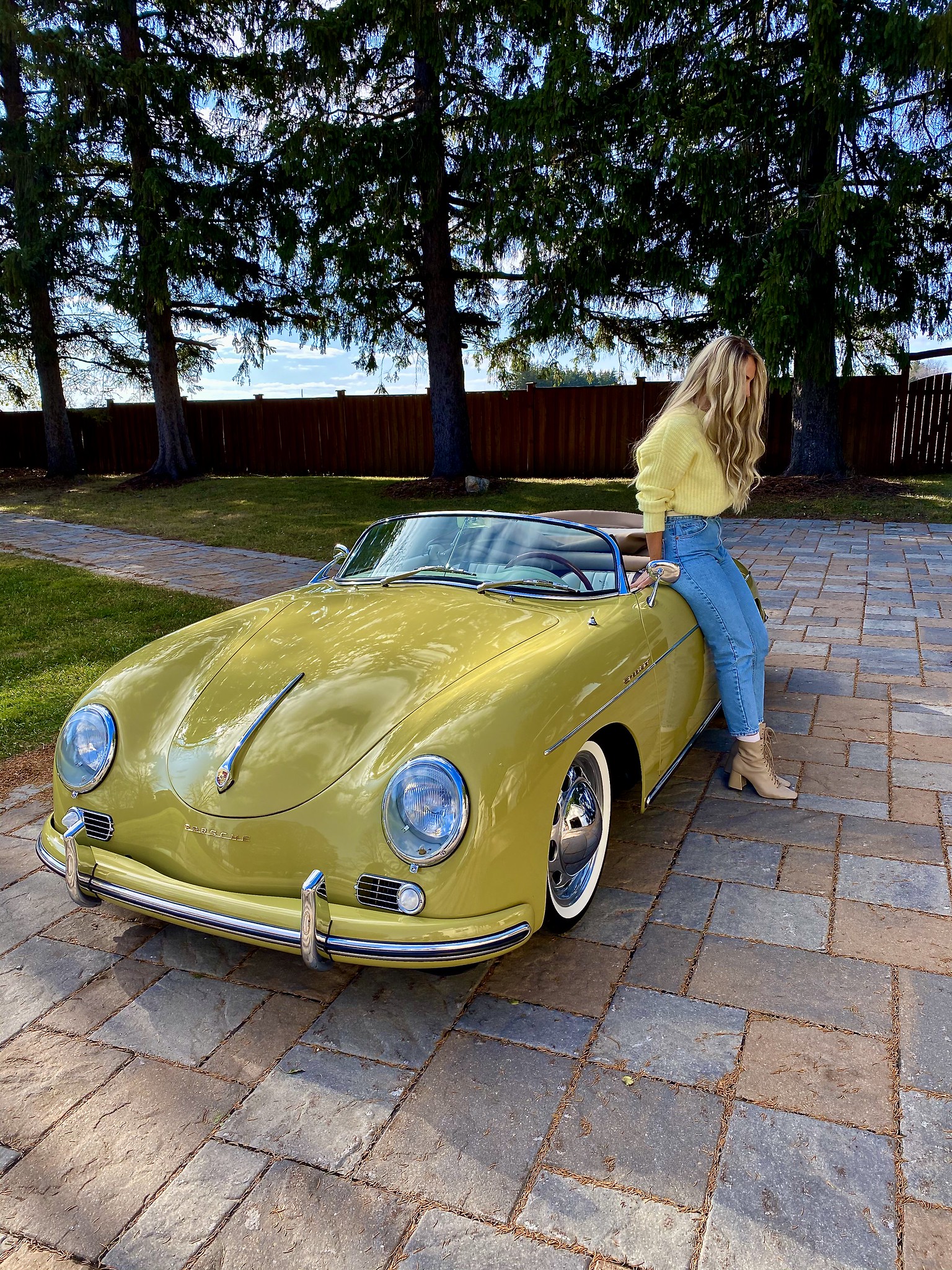 That said, Friday morning I wake her up because the transport has arrived with the new toy. She 'thinks' its the next project and gets mad at me for waking her but she gets up anyway. They open the gate and drive the Speedster (her DREAM car) out and her reaction was absolutely priceless !!