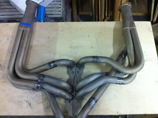 Well after smashing several set of headers, trying to find better ones, and offering to help manufacturers re-design there headers for better ground clearance, we decided to take matters into our own hands! We had a set of Hooker Super Comp headers that fit pretty well, with near equal length primaries and 1.75" tubes. The aweful Hooker ceramic coating had gone to sh*t in less than 2 years,the "Hooker" badge had fallen off, and the bottoms were now a bit flat, so we had nothing to lose. We were able to section about 3/4 out of each tube to move the collector up approx 3/4". Our goal is to get the car about 1/4" lower in ride height, and gain a little more ground clearance. For now all the tubes are fit and ready to be TIG welded, but for now they are just tacked together to test fit. We will be doing a new custom stainless exhaust to snake around our new torque arm rear suspension, trying to fit a true X pipe in about 10" of space, wish me luck!
